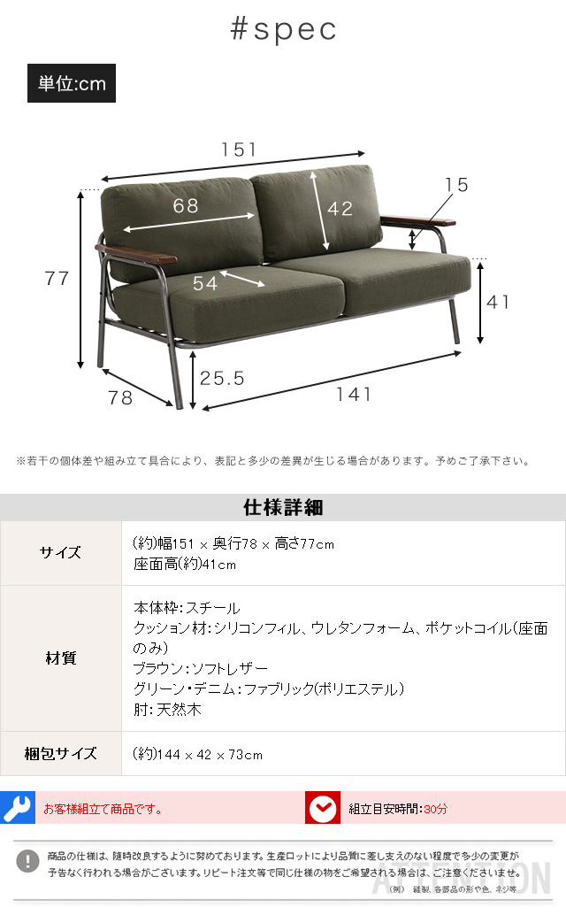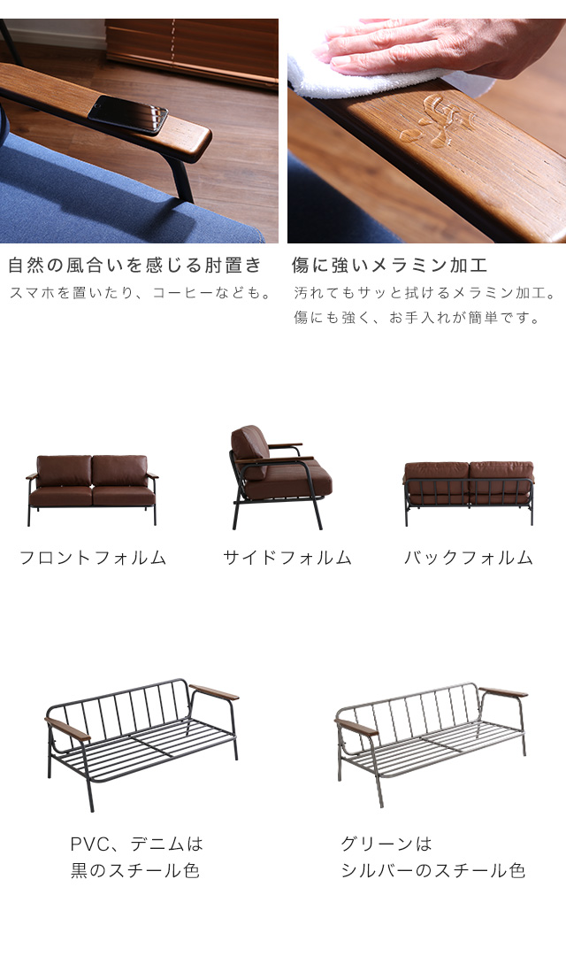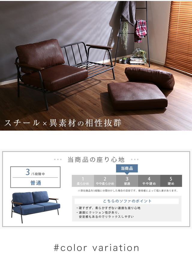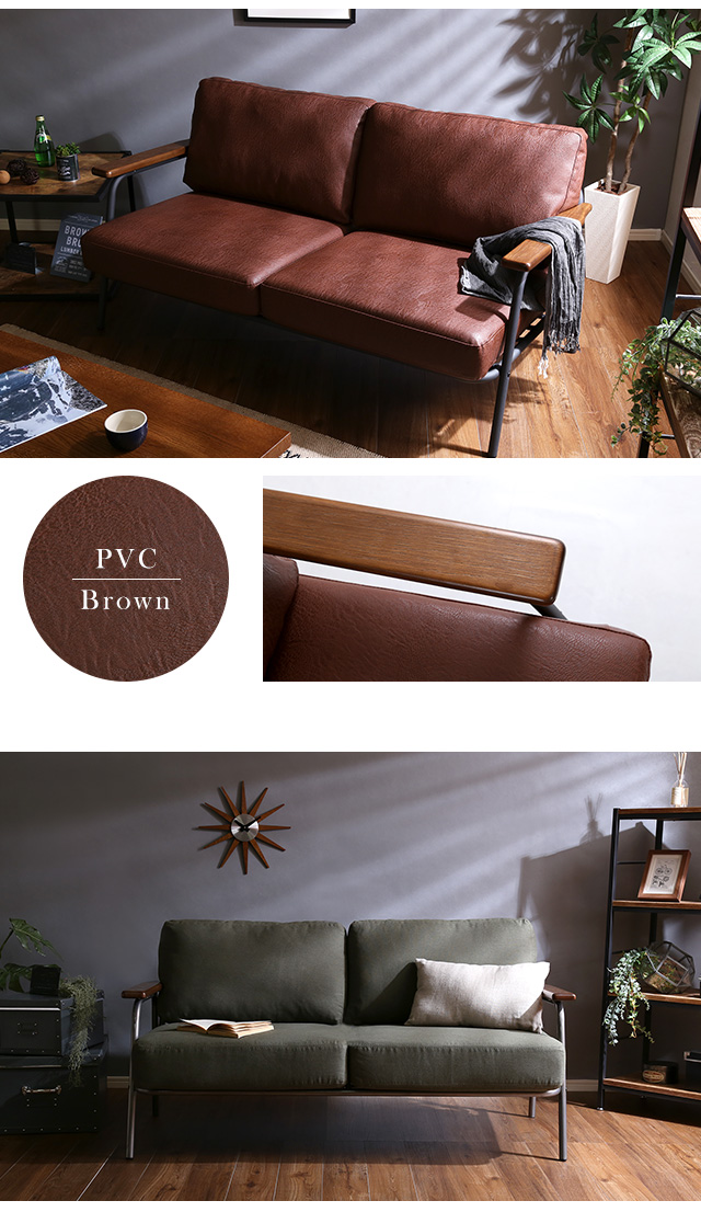 ヴィンテージスチールソファ(ブラウン、グリーン、ブルーの3色) | Matthew-マシュー-[ブラウン]