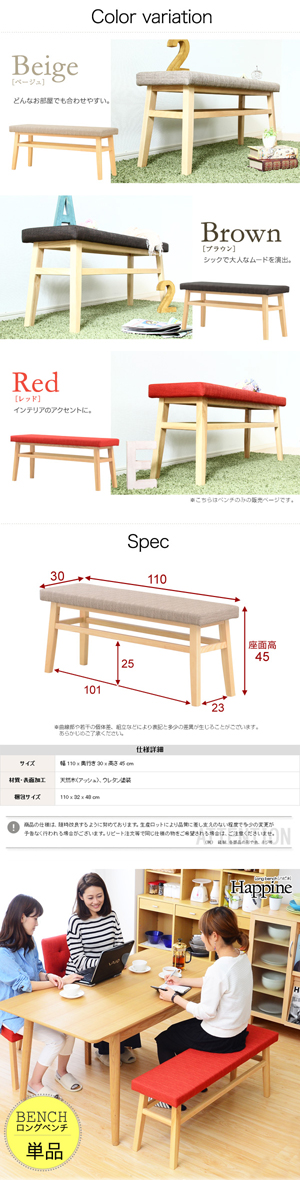 快適な座り心地!ダイニングベンチ単品(幅110)「-Happine-ハピネ」[レッド]