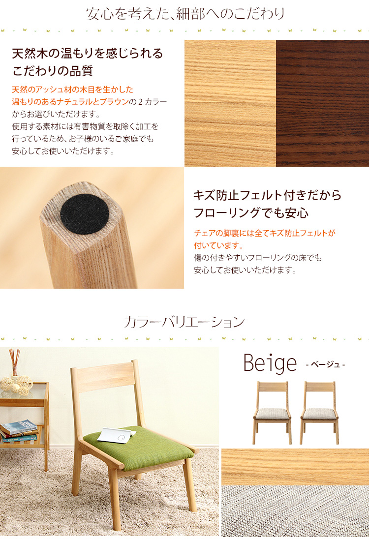 ダイニングチェア単品2脚 ナチュラルロータイプ 木製アッシュ材|Risum-リスム-[ベージュ]