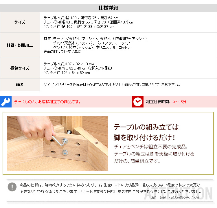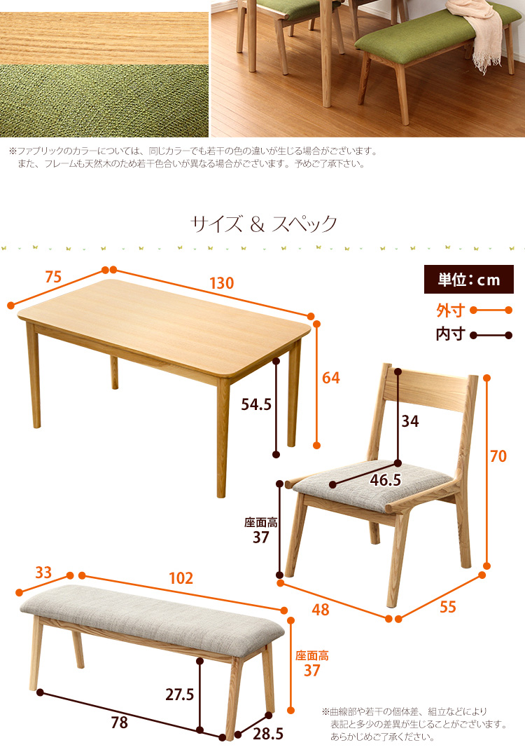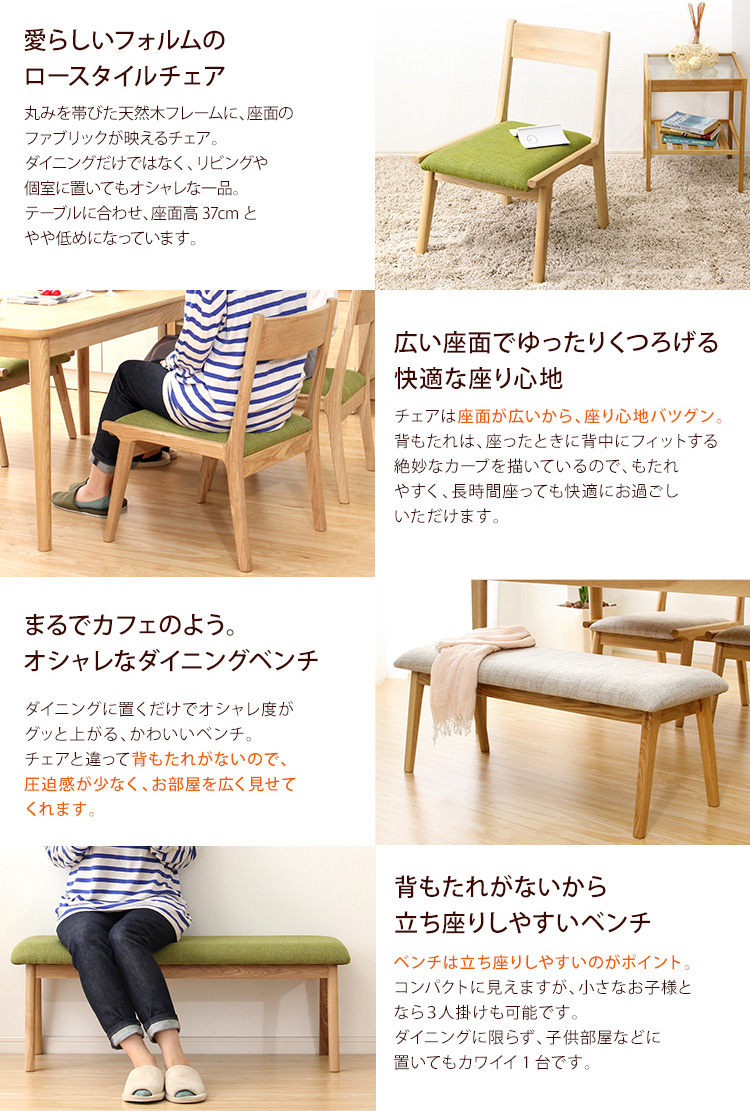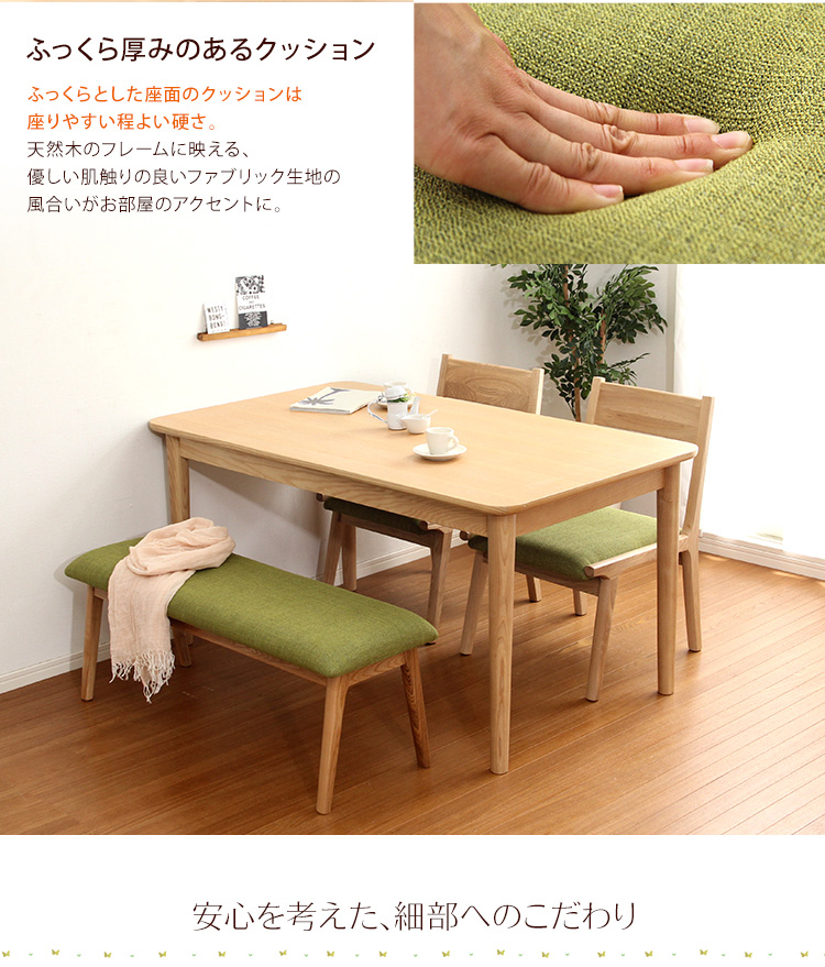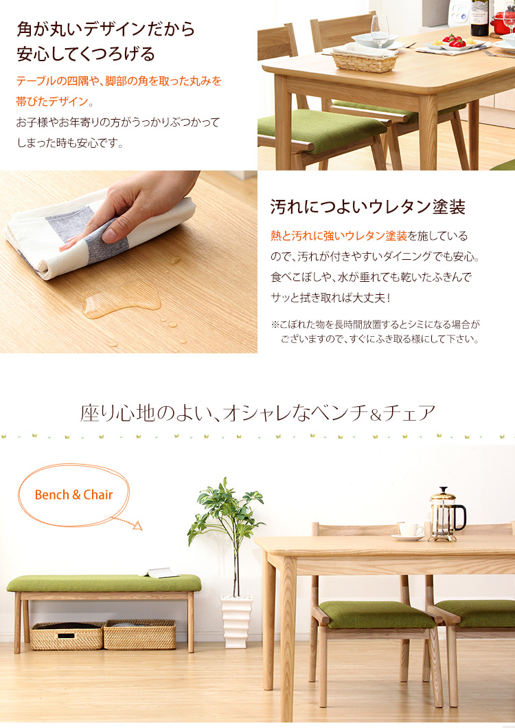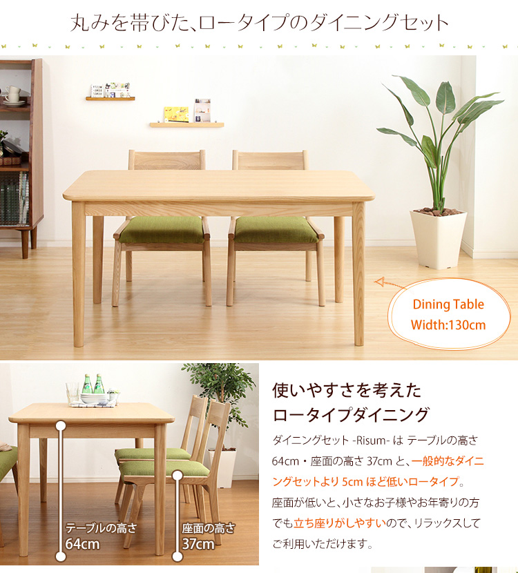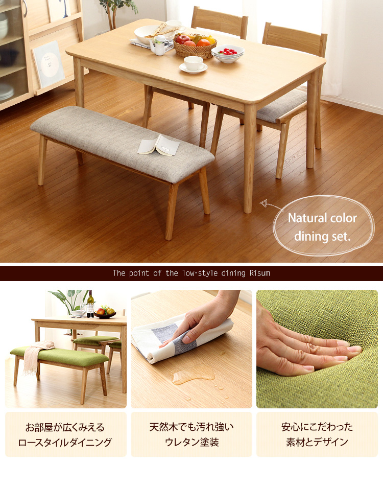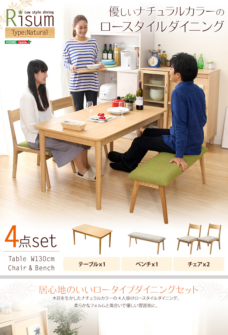 ダイニング4点セット(テーブル+チェア2脚+ベンチ)ナチュラルロータイプ 木製アッシュ材|Risum-リスム-[ベージュ]