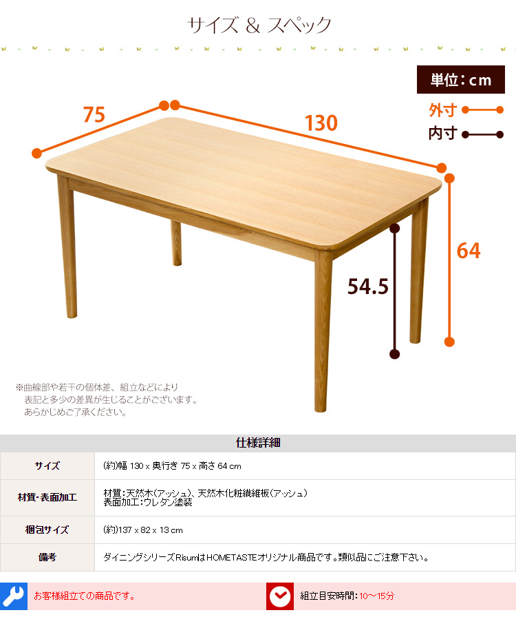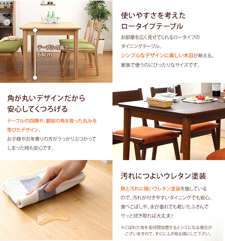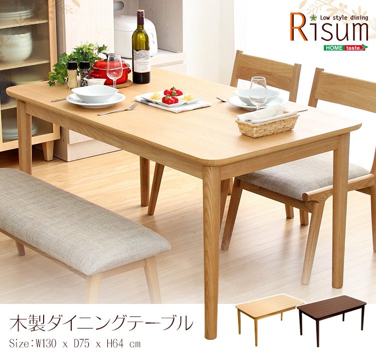 ダイニングテーブル単品(幅130cm) ナチュラルロータイプ 木製アッシュ材|Risum-リスム-[ナチュラル]
