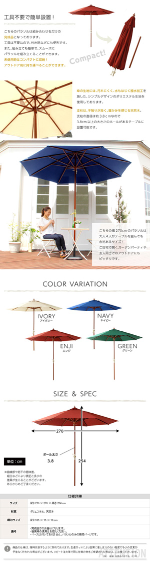天然木 木製パラソル 270cm【マーチ-MARCH-】(パラソル 撥水 天然木)