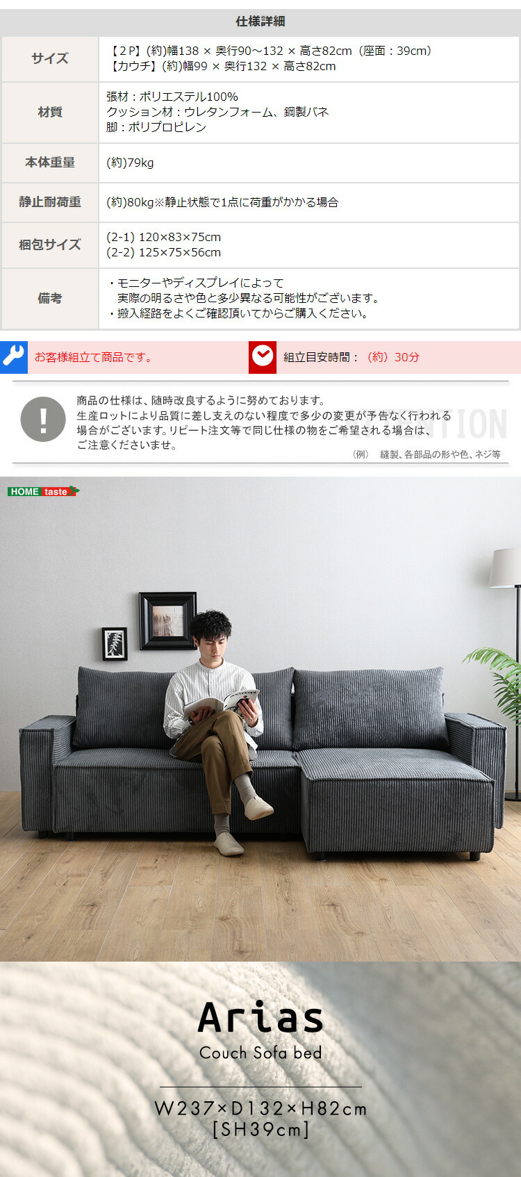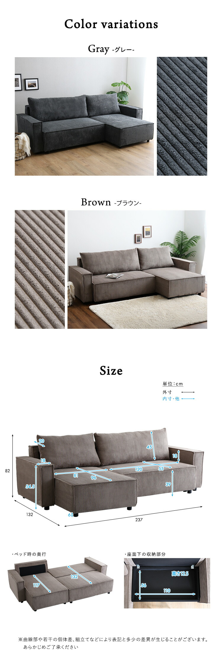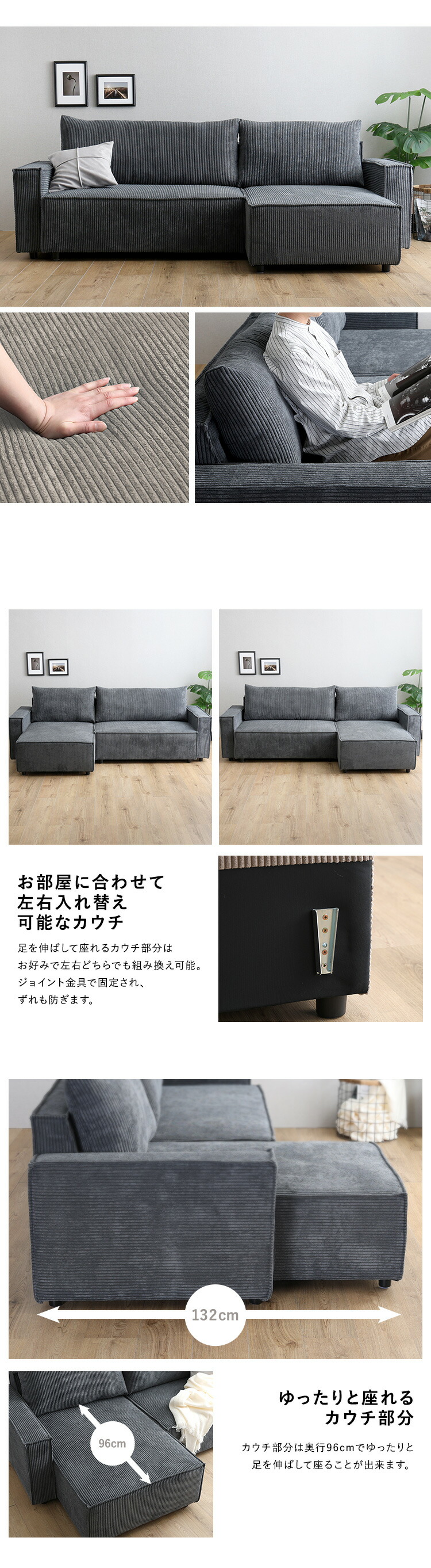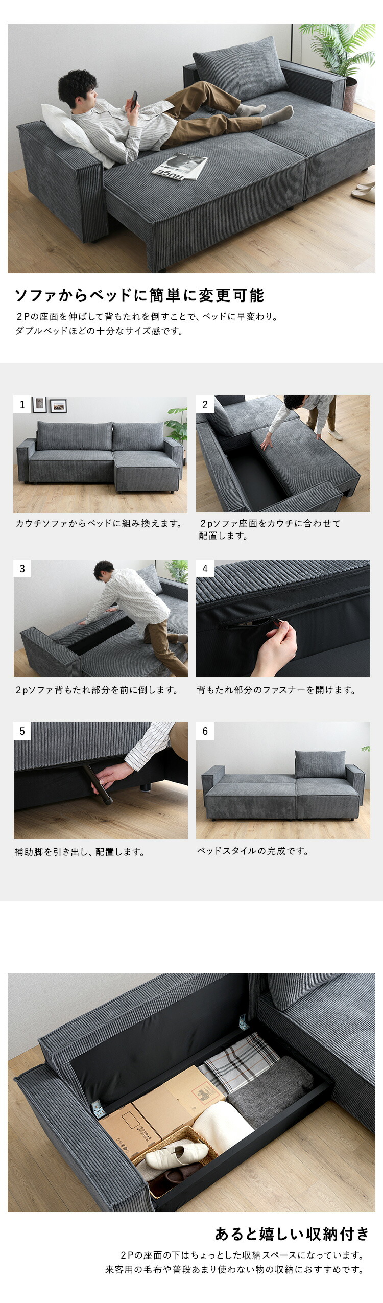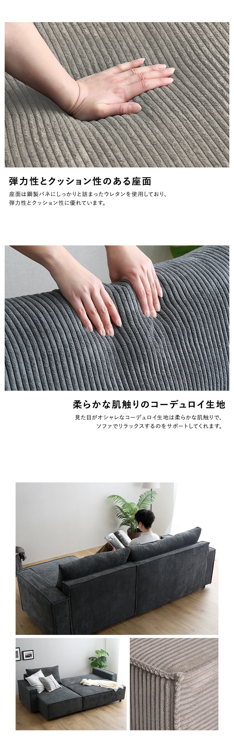 カウチソファ 3人掛け 三人掛け 収納付き コーデュロイ生地 コーナーソファ ソファベッド ローソファ フロアソファ 脚付き レイアウト自由 ソファ ソファー 背もたれ 一人暮らし 新生活 【代引不可】[ブラウン]