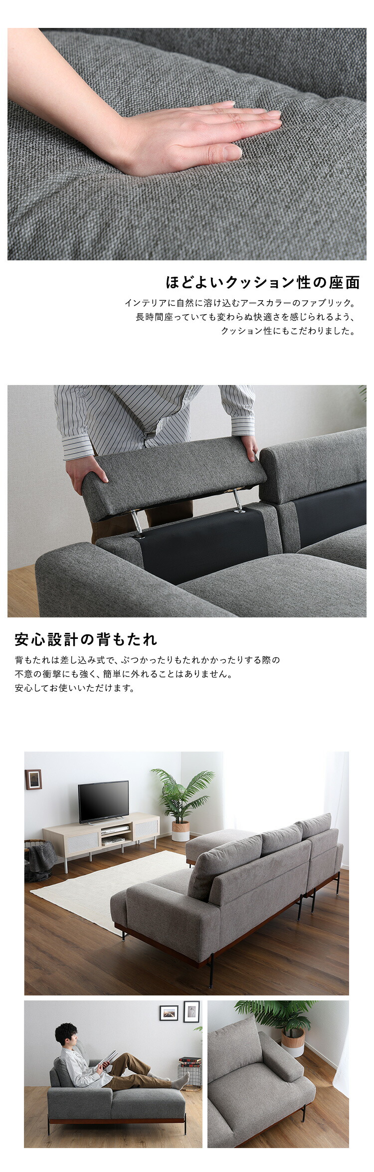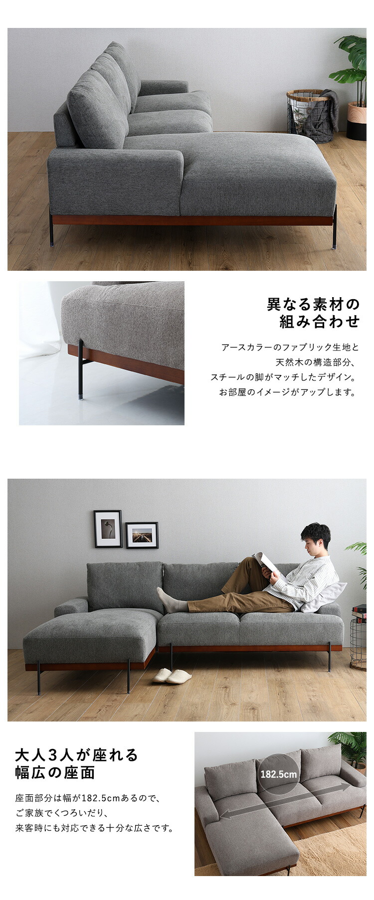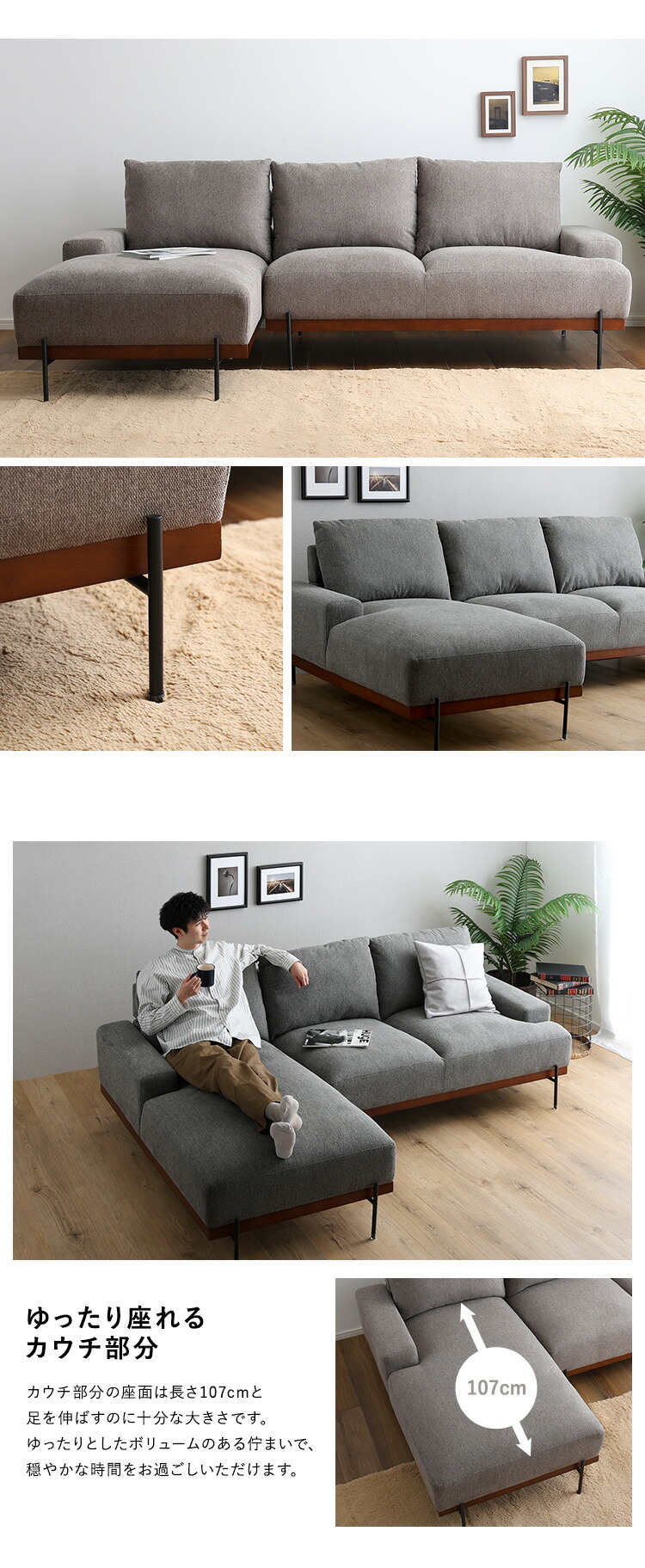 スチール脚がスタイリッシュ カウチソファ 3人掛け 三人掛け 脚付き コーナーソファ ソファベッド ハイタイプ フロアソファ ソファ ソファー 背もたれ 新生活 【代引不可】[ベージュ]