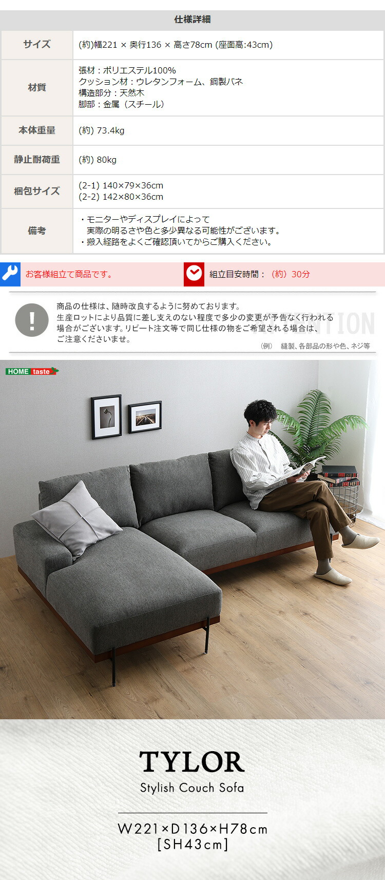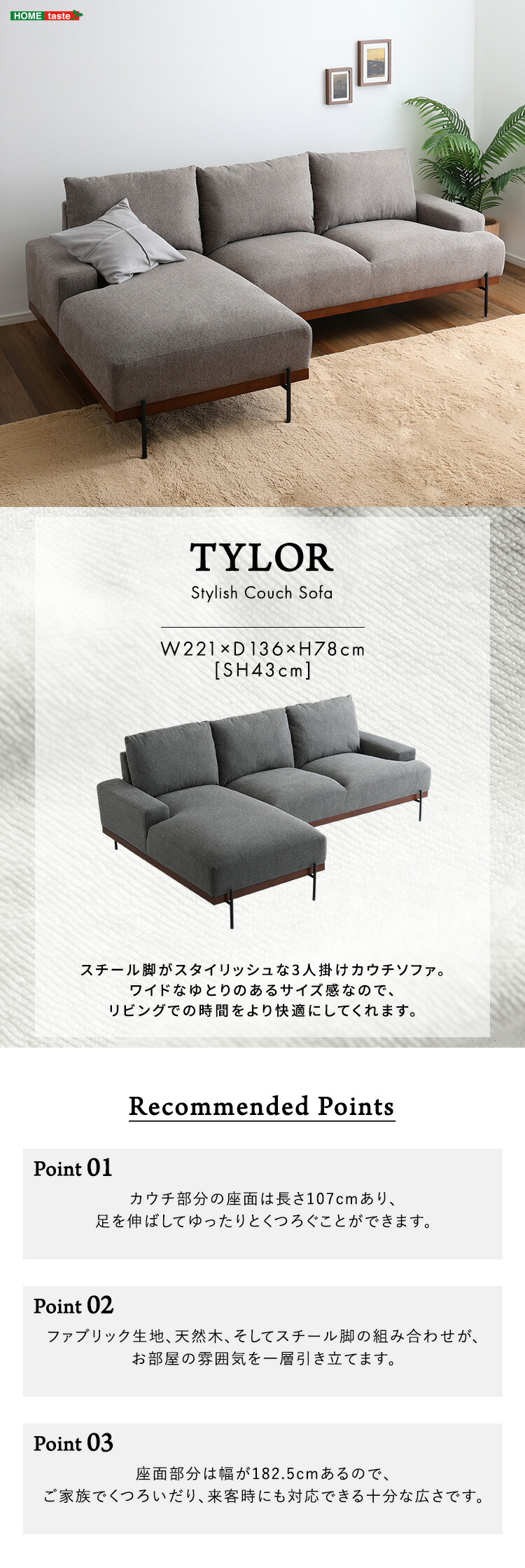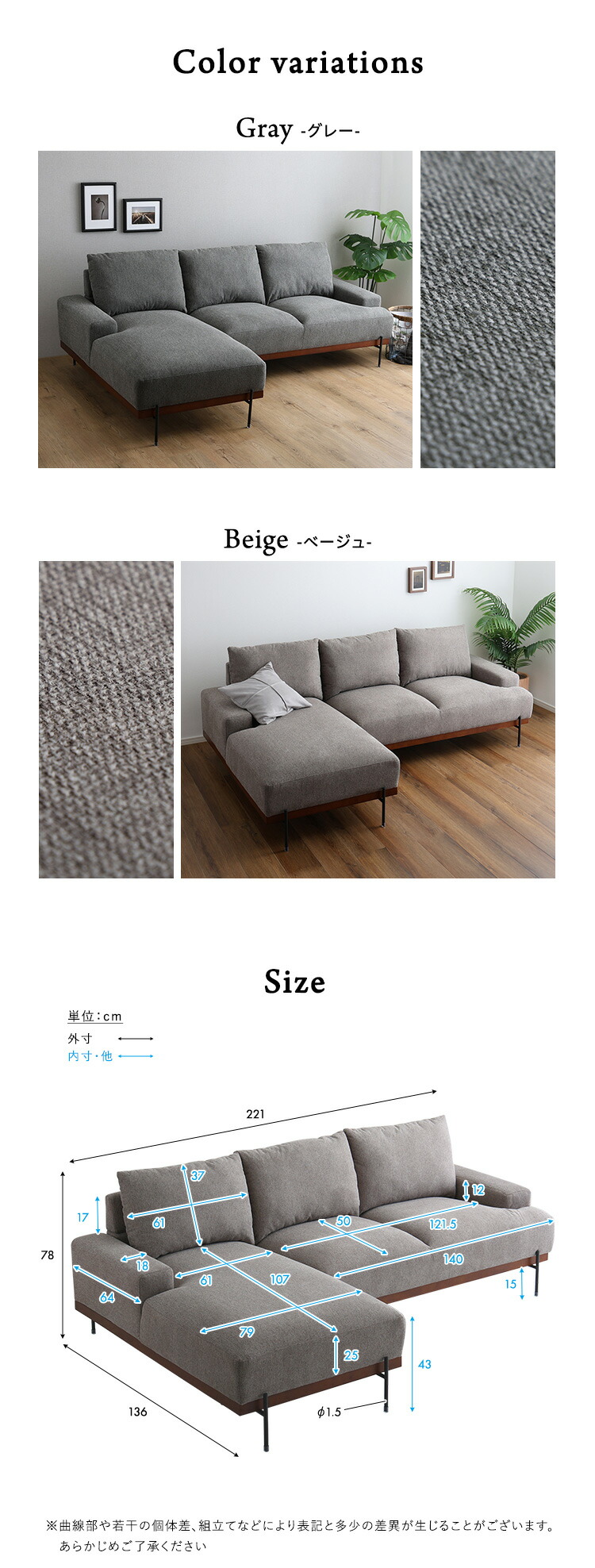 スチール脚がスタイリッシュ カウチソファ 3人掛け 三人掛け 脚付き コーナーソファ ソファベッド ハイタイプ フロアソファ ソファ ソファー 背もたれ 新生活 【代引不可】[ベージュ]