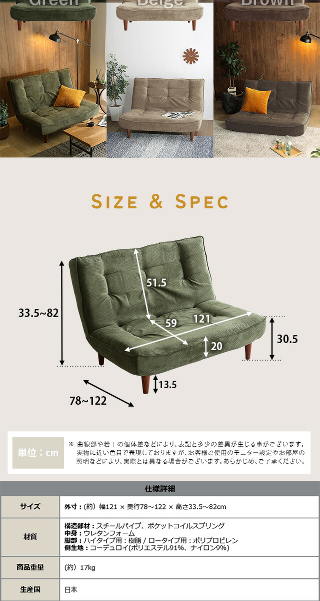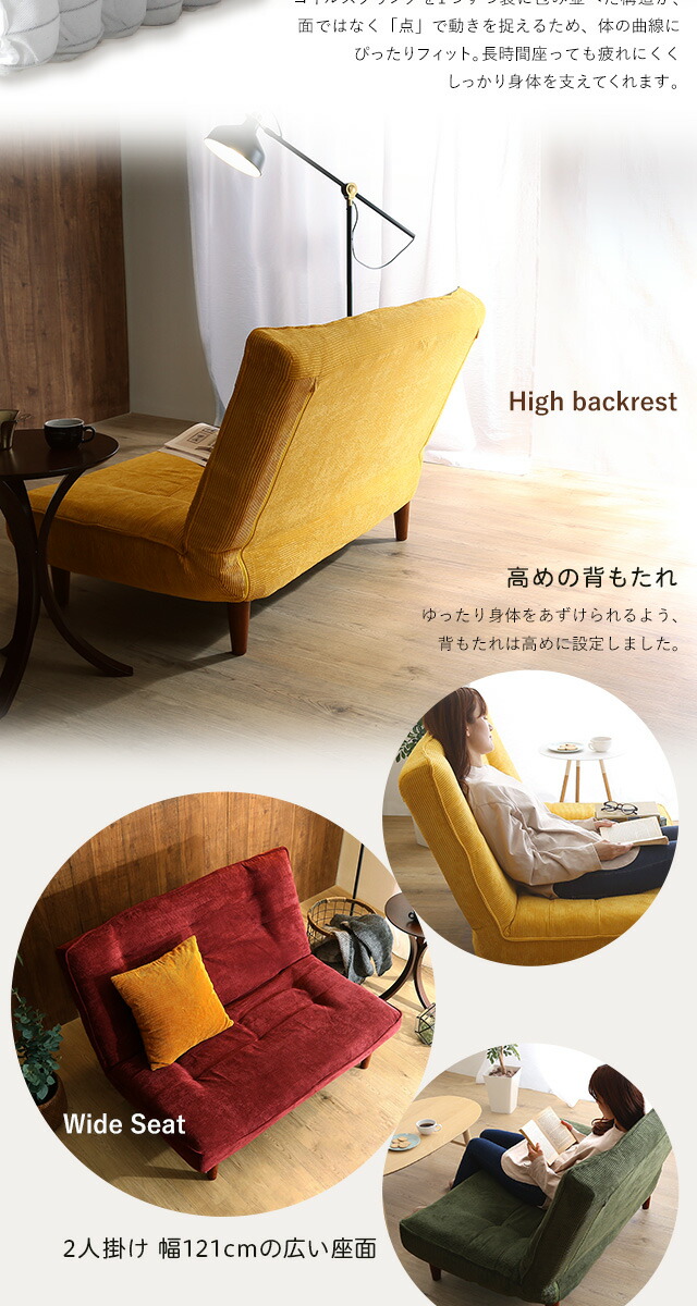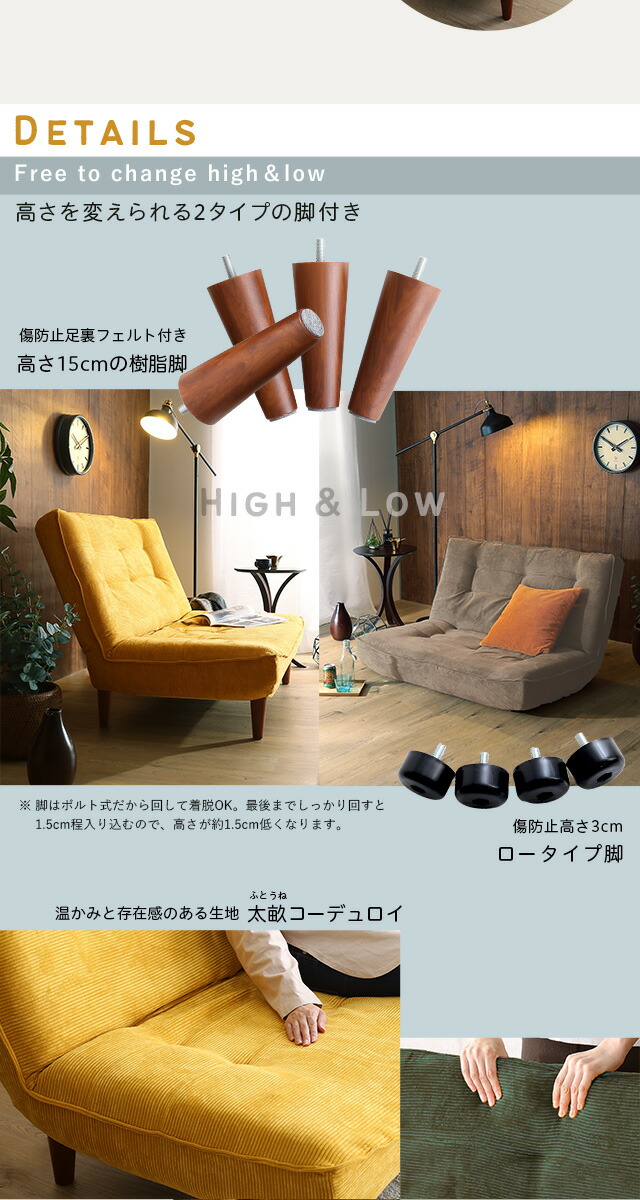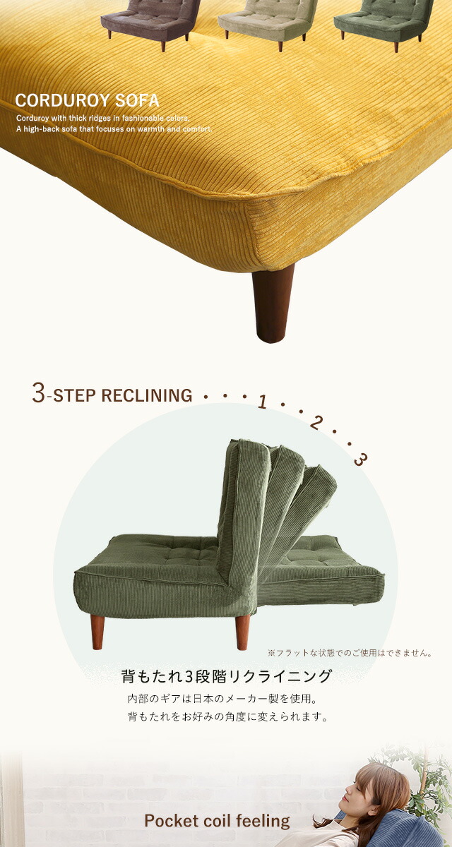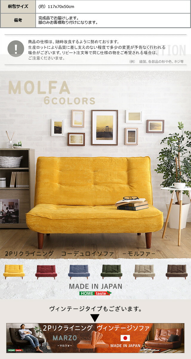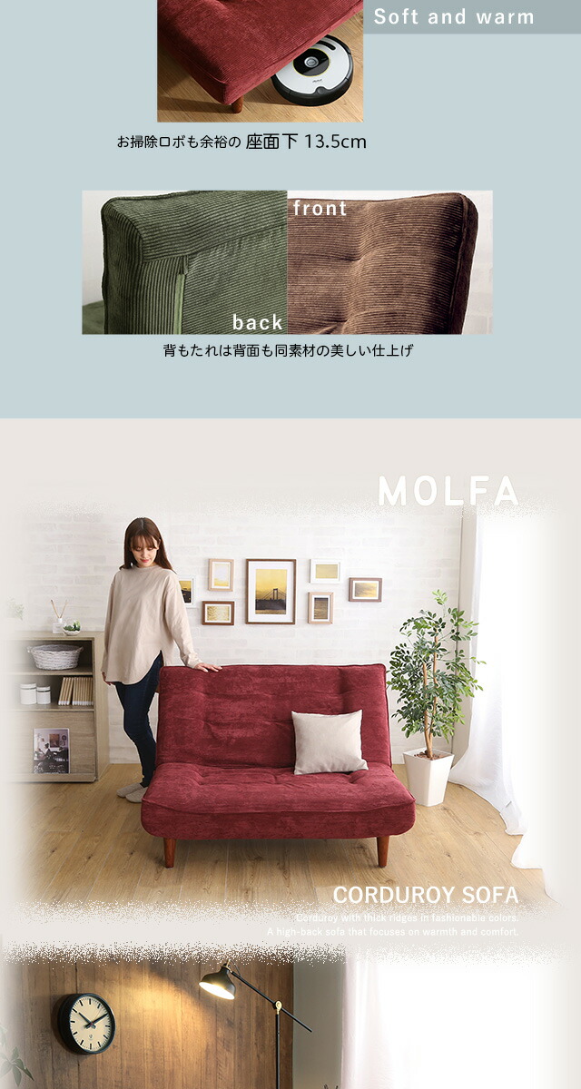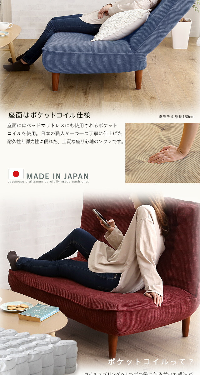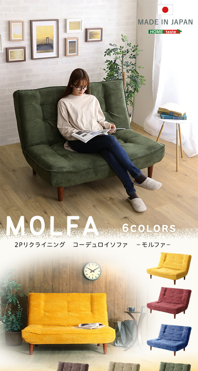 ソファ 2人掛け 3段階 リクライニング 完成品 日本製 脚取り外し可能 コーデュロイソファ 【MOLFA-モルファ-】 ソファー ローソファ 二人掛け 2Pソファ 座椅子 おしゃれ 可愛い かわいい ローソファ リビングソファ ポケットコイル リビング 新生活 【代引不可】[ネイビー]