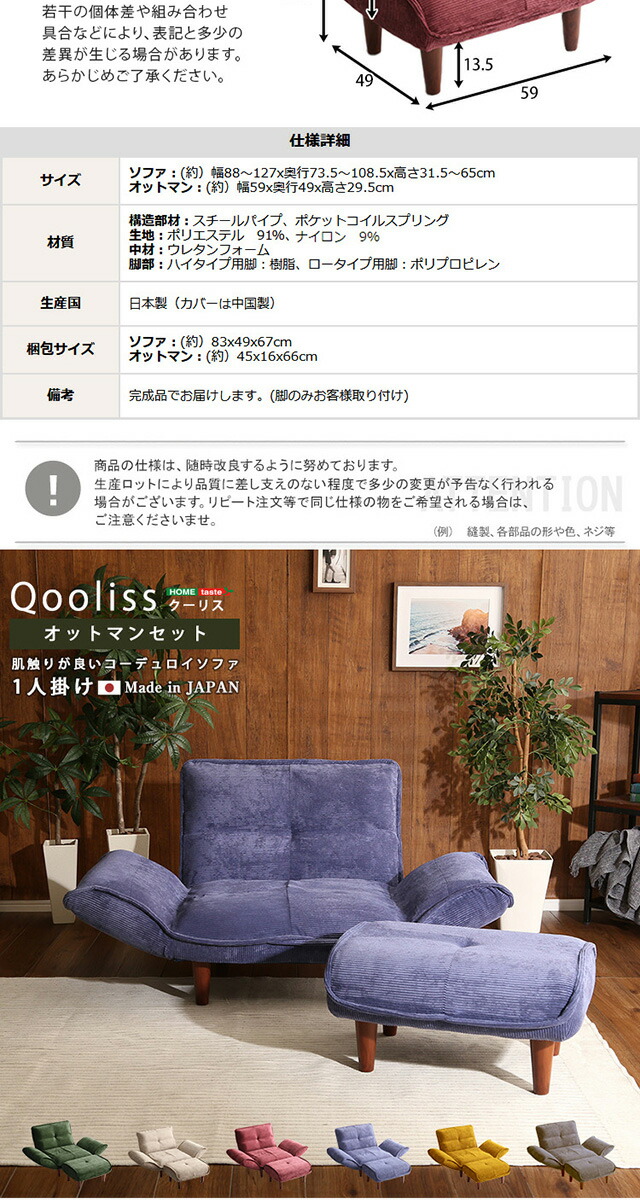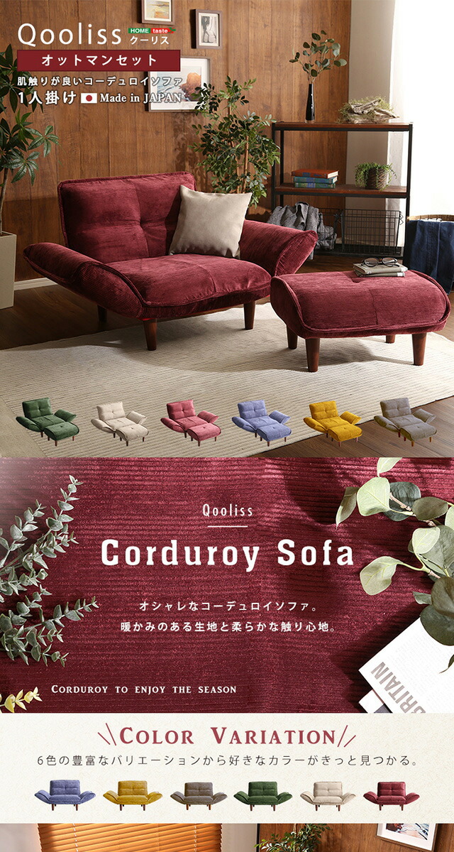 肌触りが良いコーデュロイソファ 1人掛け オットマンセットQooliss-クーリス-代引不可[ベージュ]