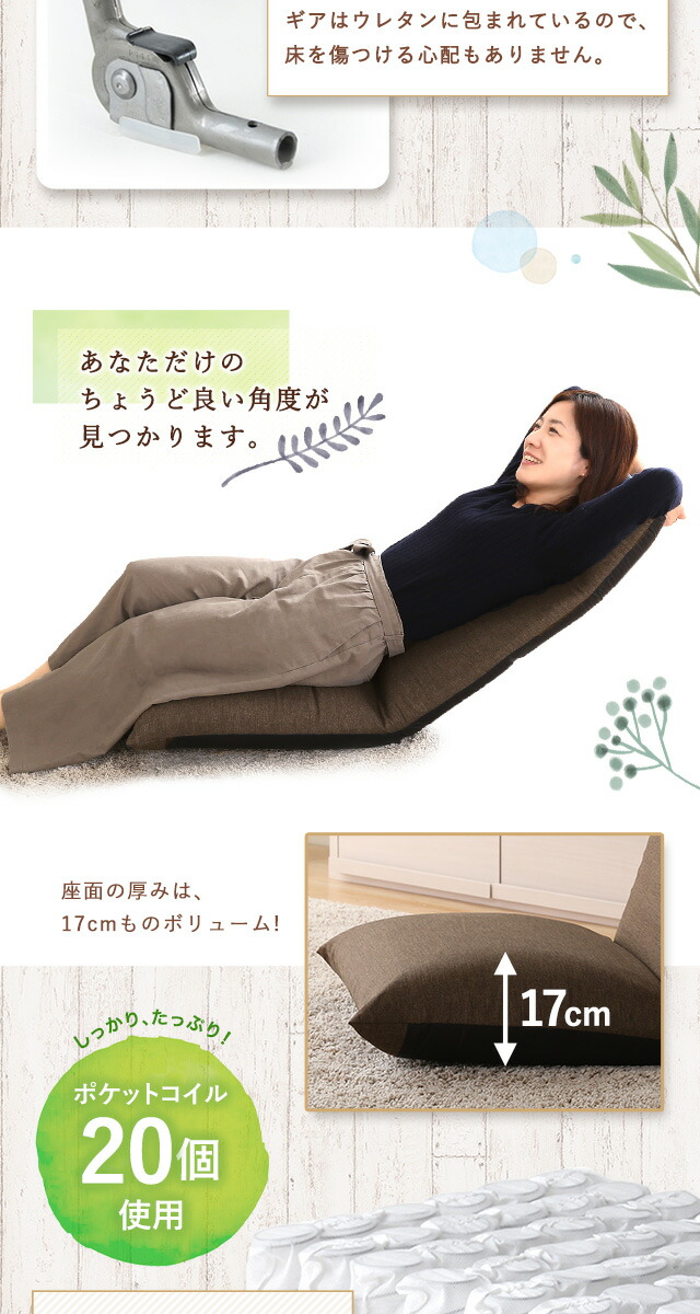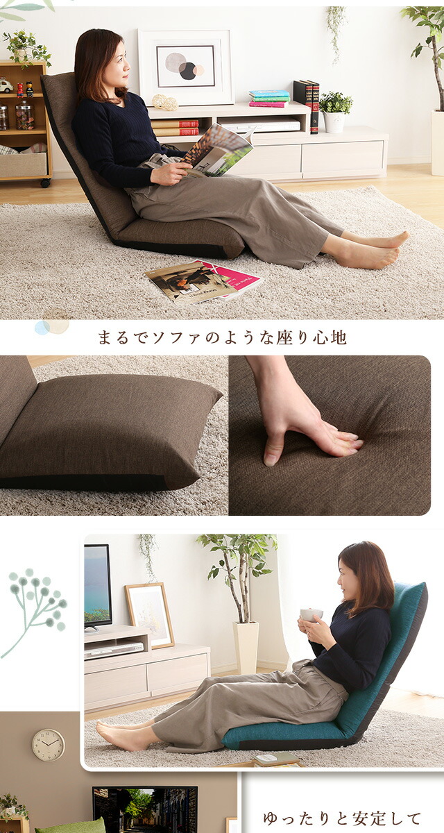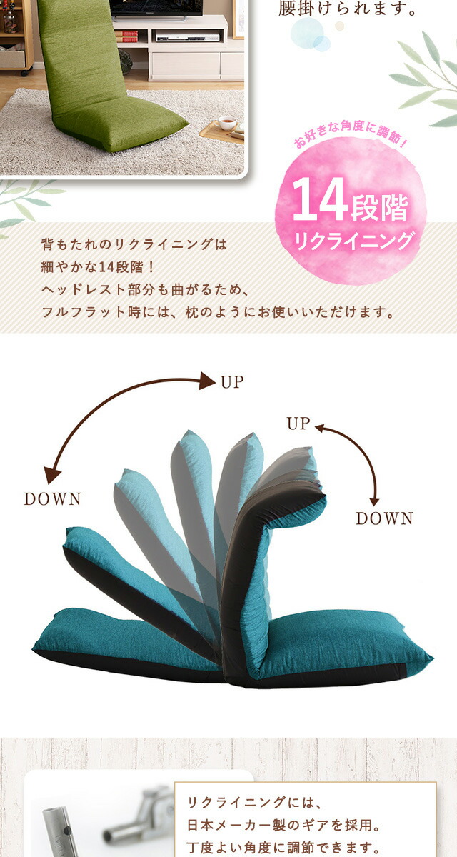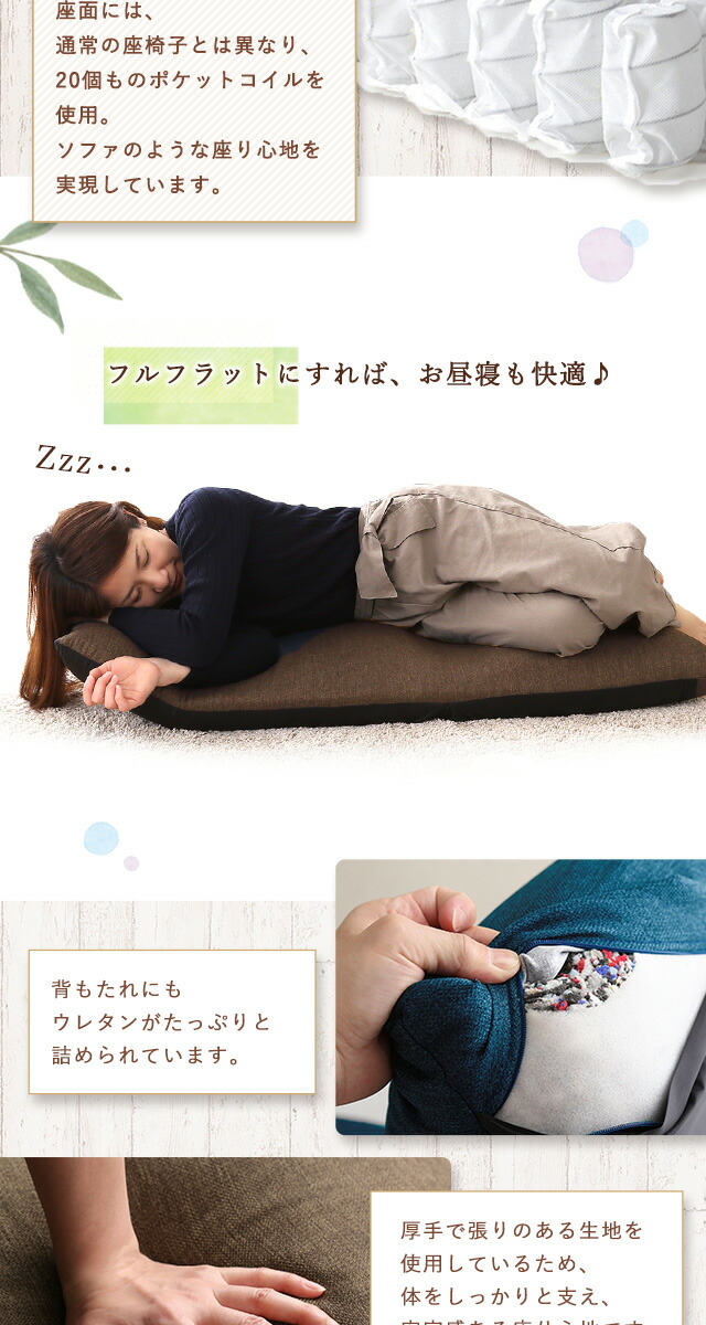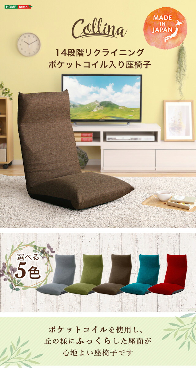 日本製 リクライニングポケットコイル入り 座椅子 collina-コリーナ- 14段階 リクライニングチェア 折り畳み式 5カラー イス 椅子 背もたれ ふわふわ 代引/同梱不可[ブルー]