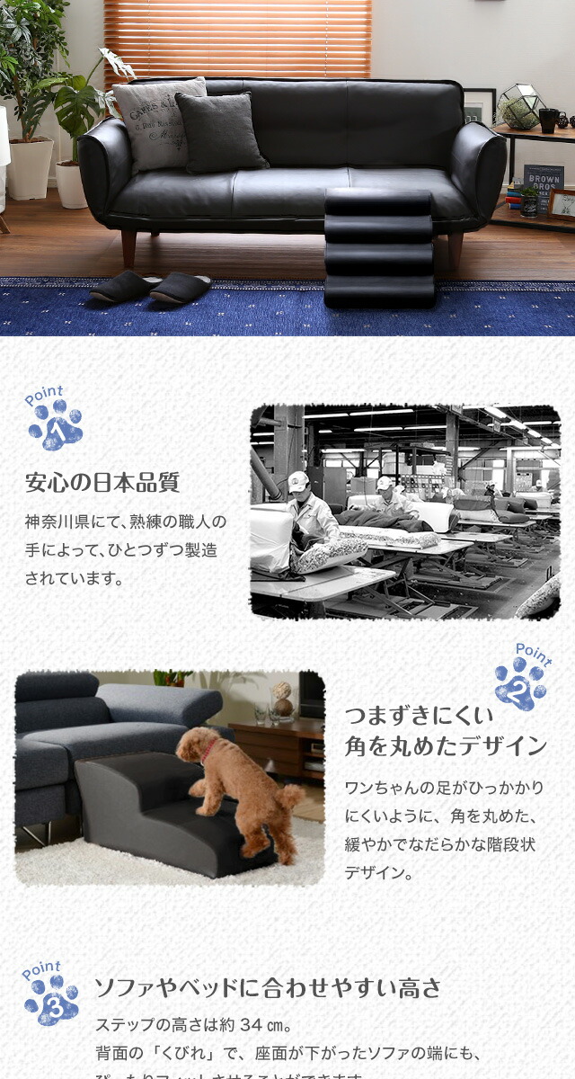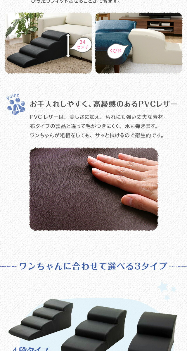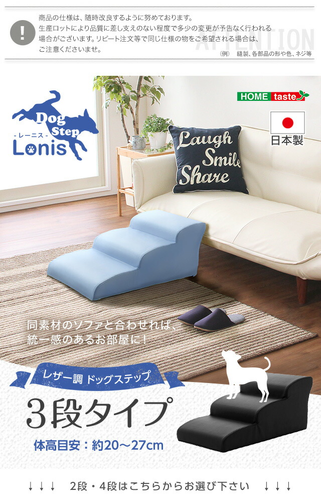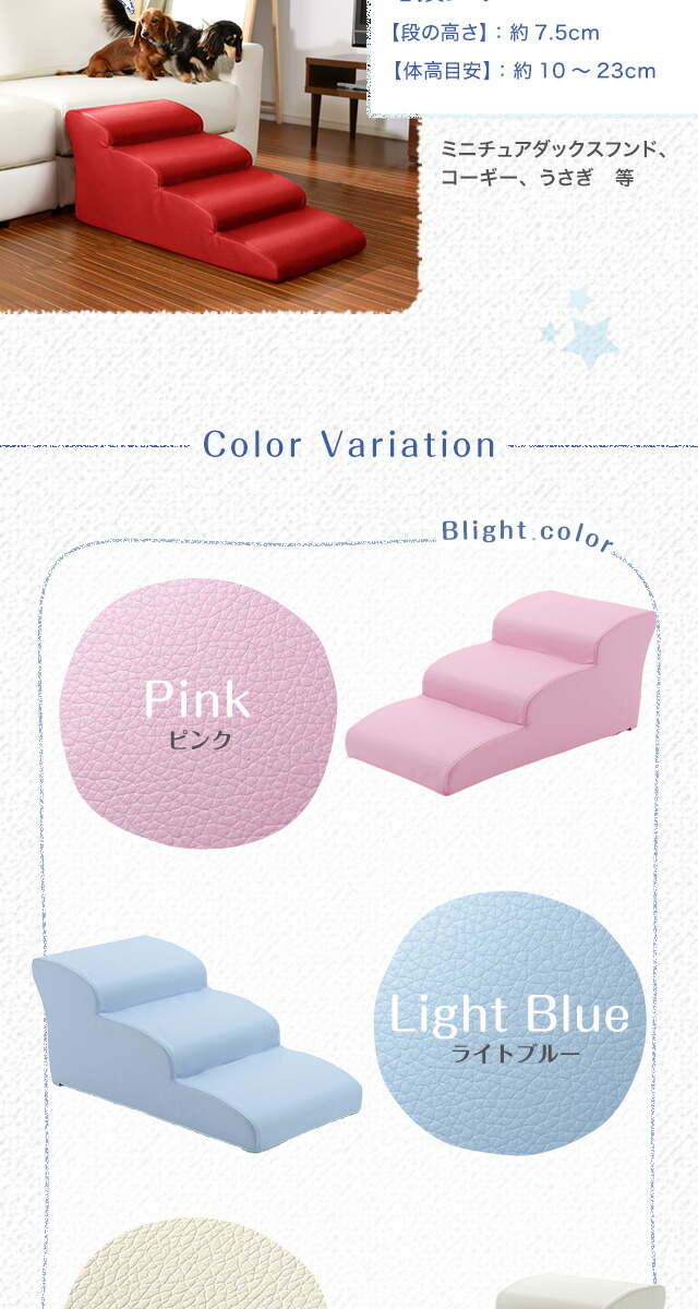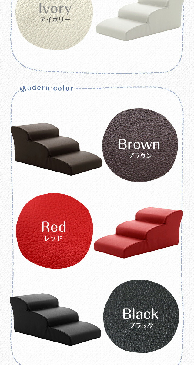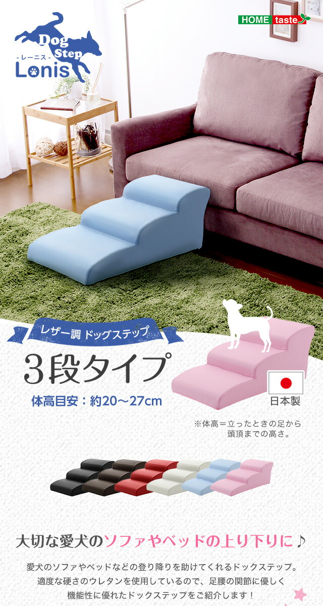 日本製ドッグステップPVCレザー、犬用階段3段タイプlonis-レーニス- 代引不可/同梱不可[レッド]