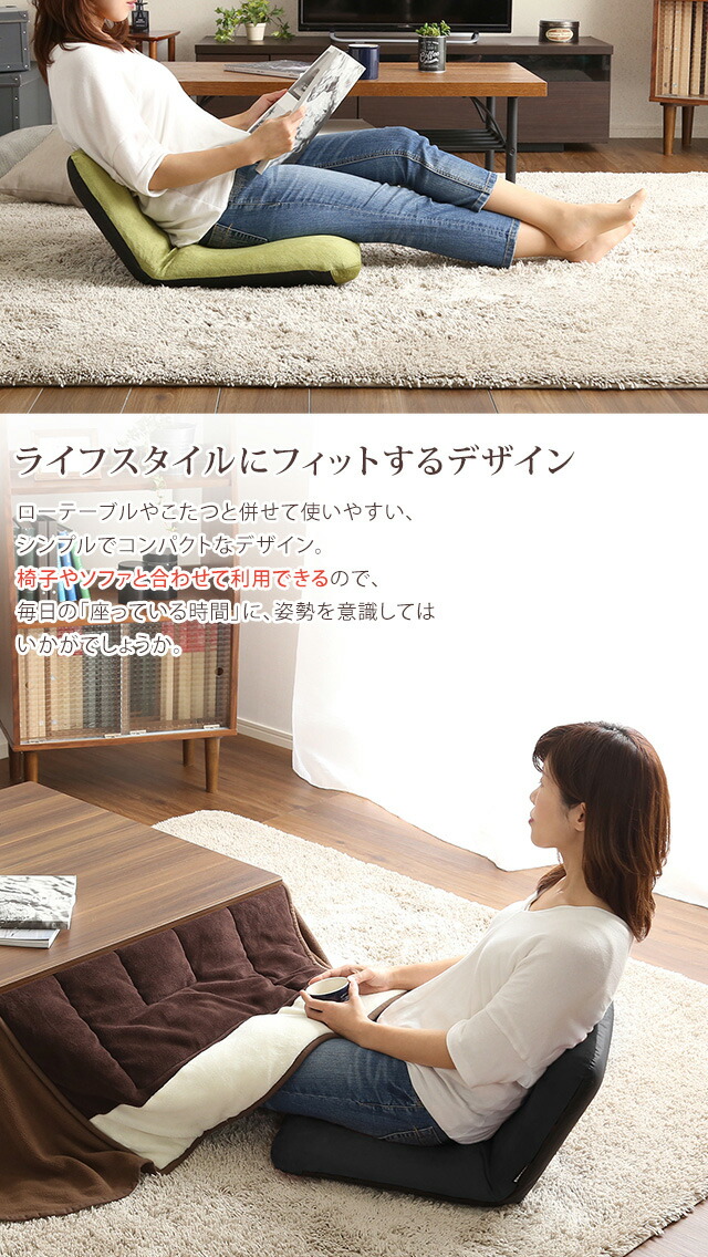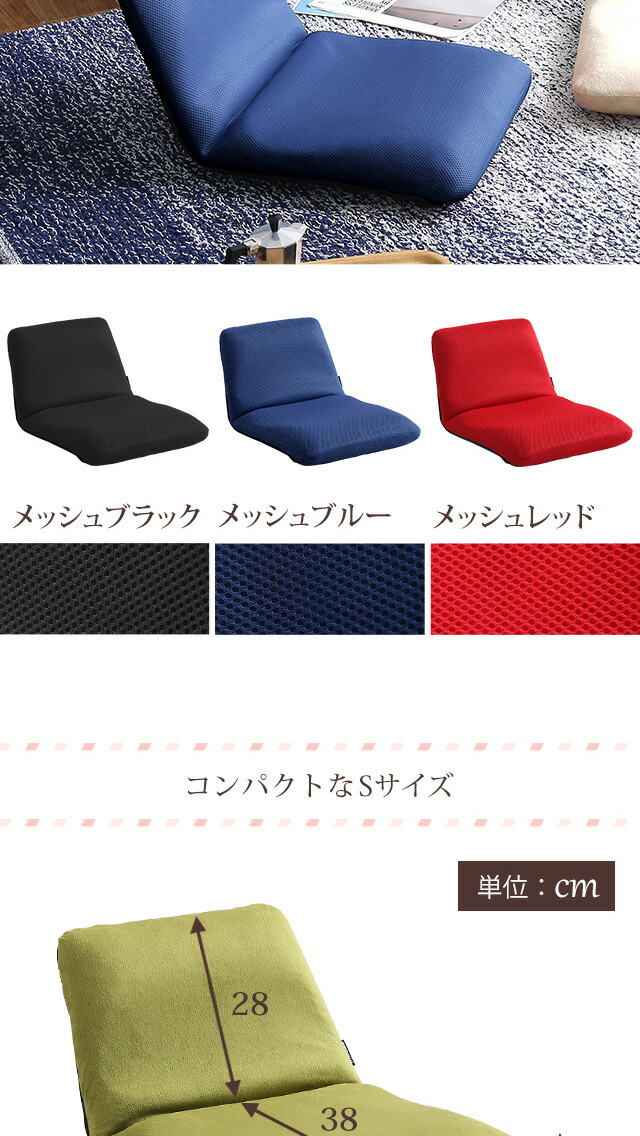 美姿勢習慣 コンパクト リクライニング座椅子 (Sサイズ) 日本製 一人掛け 14段階にリクライニング[ブルー]