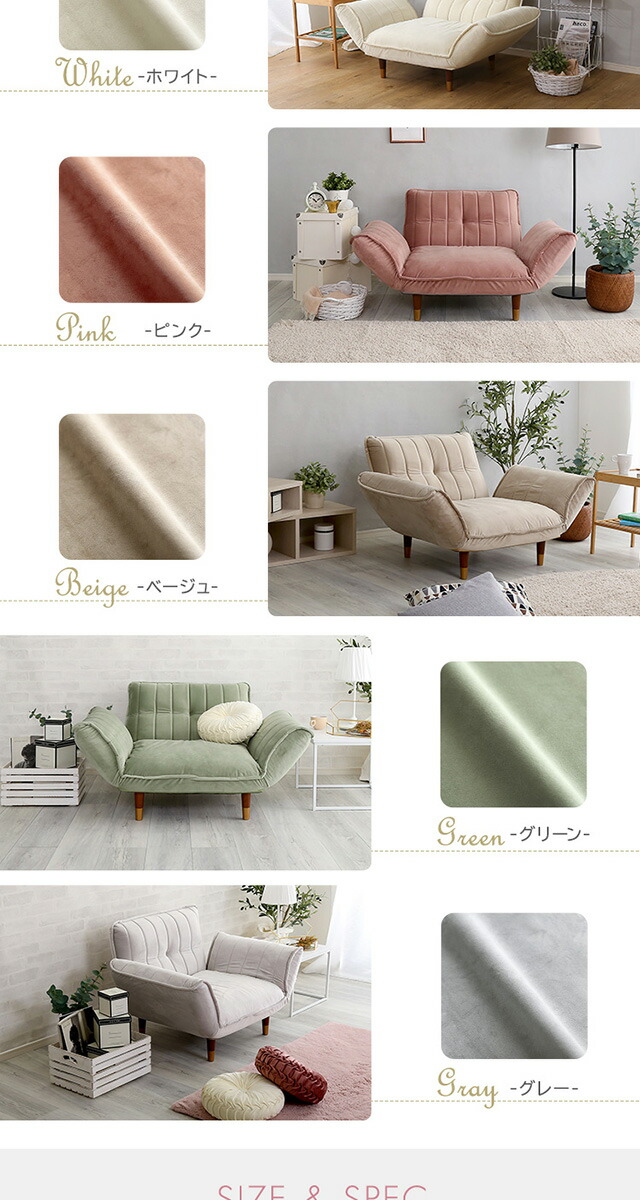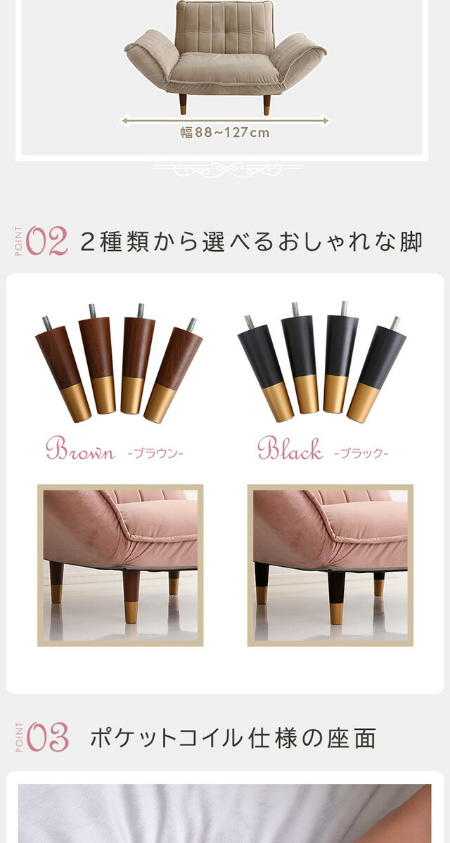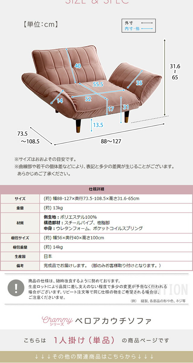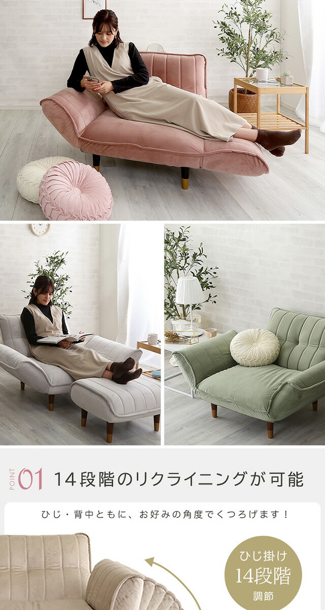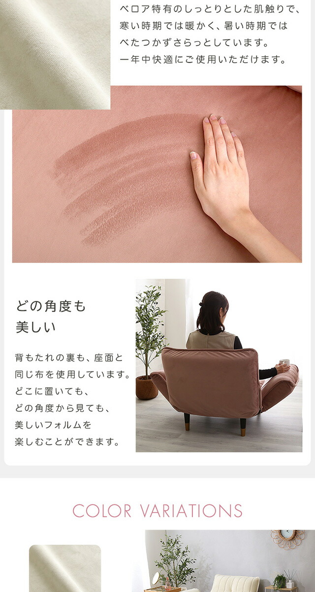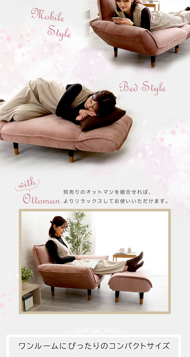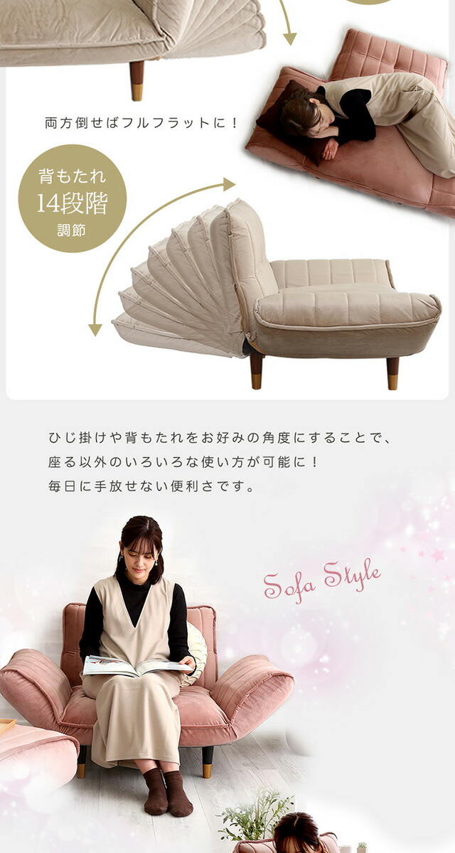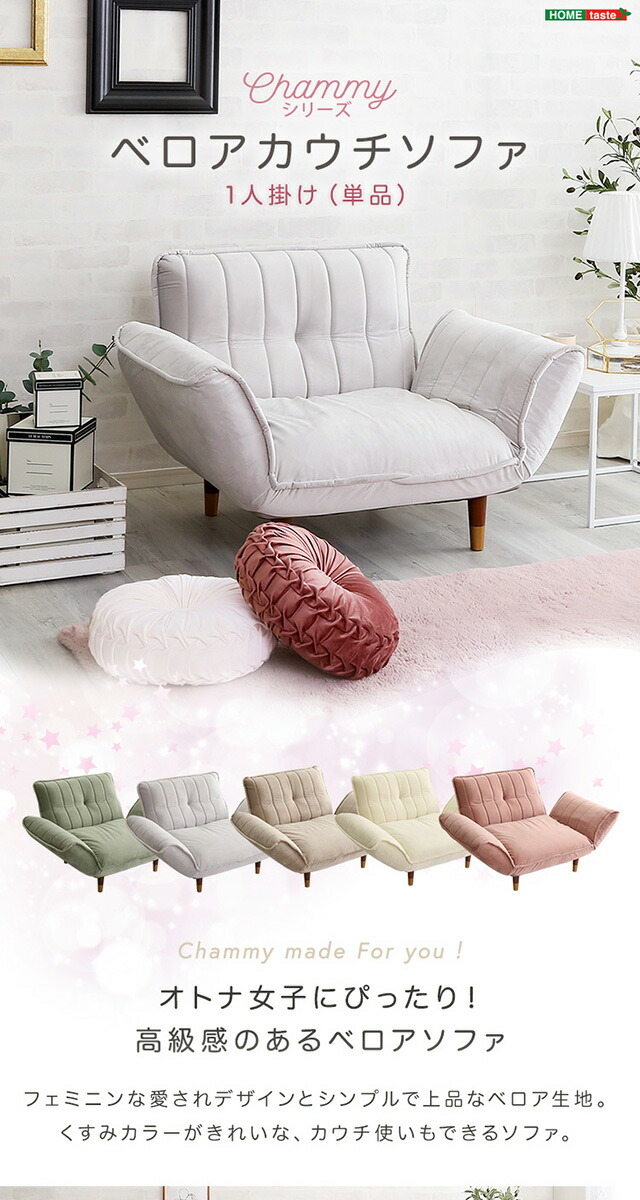 ベロアカウチソファ 1人掛け 【Chammy -チャミー-】 リクライニング 14段階 カウチソファ ソファ 一人掛け 一人暮らし 日本製 ローソファ 大人かわいいインテリア 可愛い 【代引不可】[ベージュ&ブラック]