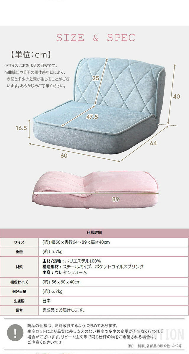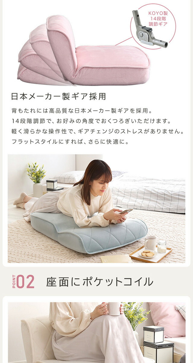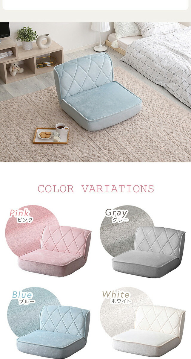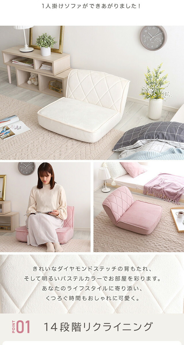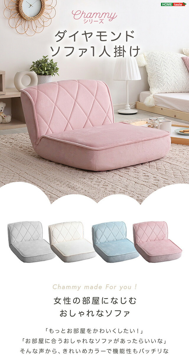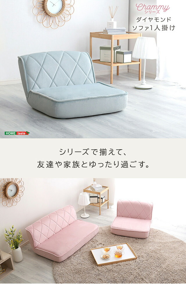 ソファ 一人掛け 14段階 リクライニング 大人かわいい パステカラー 日本製 ダイヤモンドソファ 【Chammy -チャミー-】 ソファー ローソファ 座椅子 1人掛け 一人用 可愛い 姫系 おしゃれ 椅子 イス 【代引不可】[ブルー]