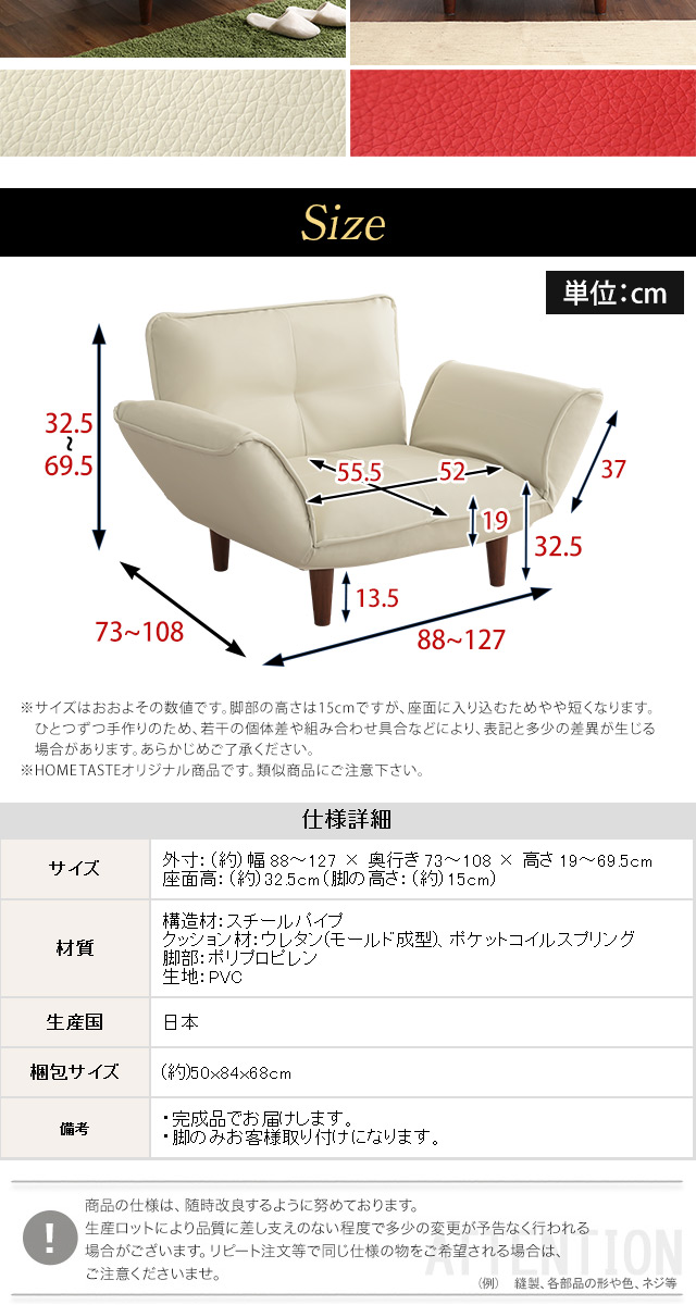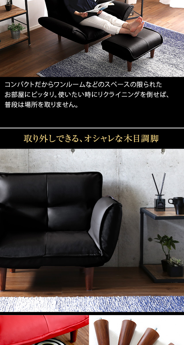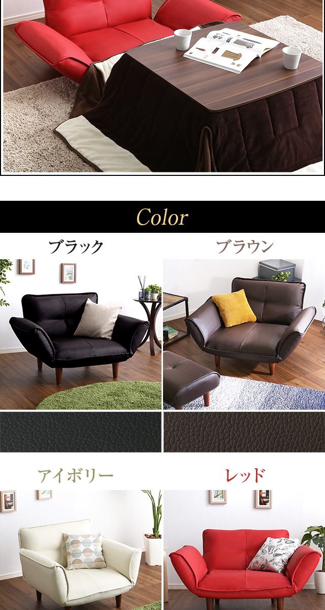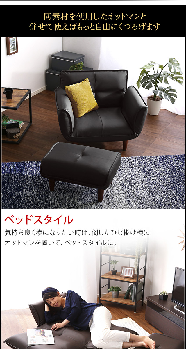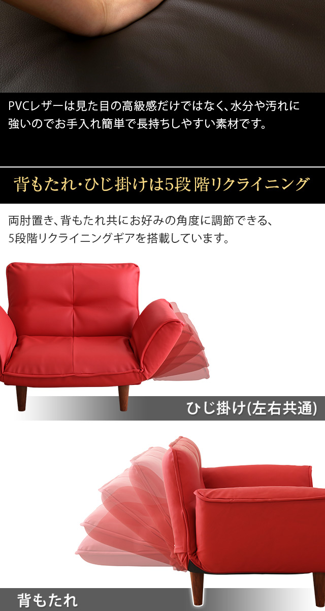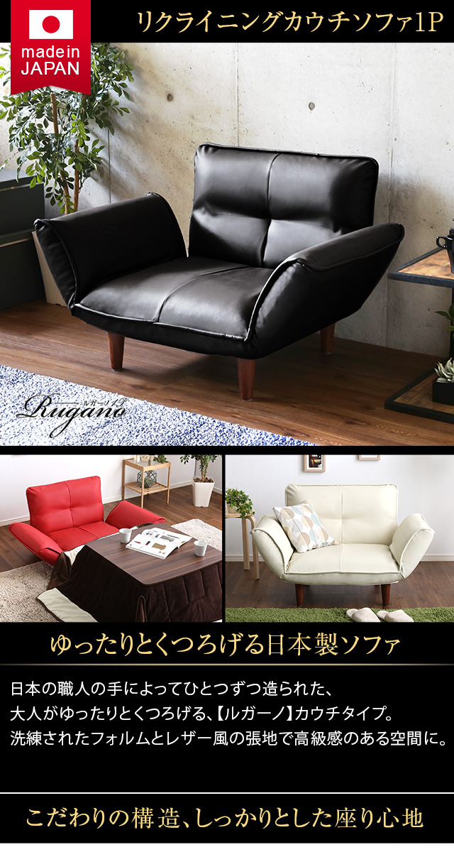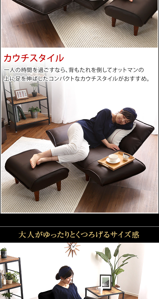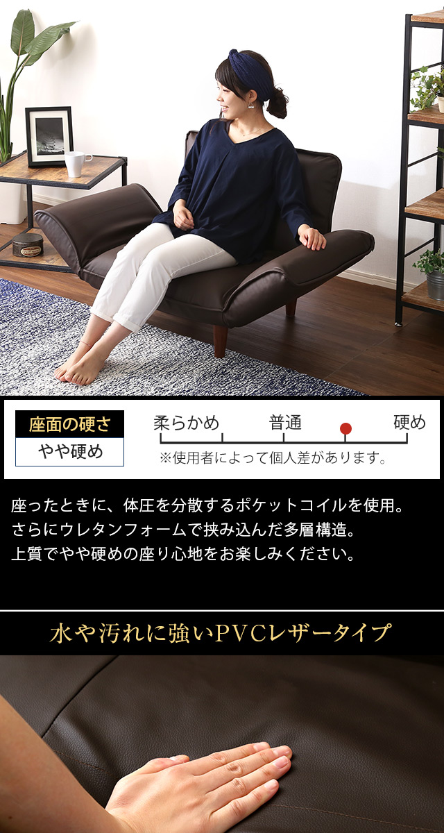 1人掛ソファ(PVCレザー)5段階リクライニング、フロアソファ、カウチソファに 日本製|Rugano-ルガーノ-[ブラウン]
