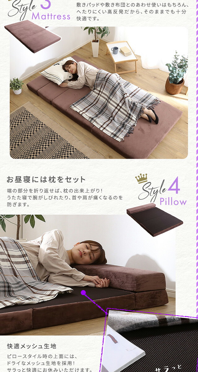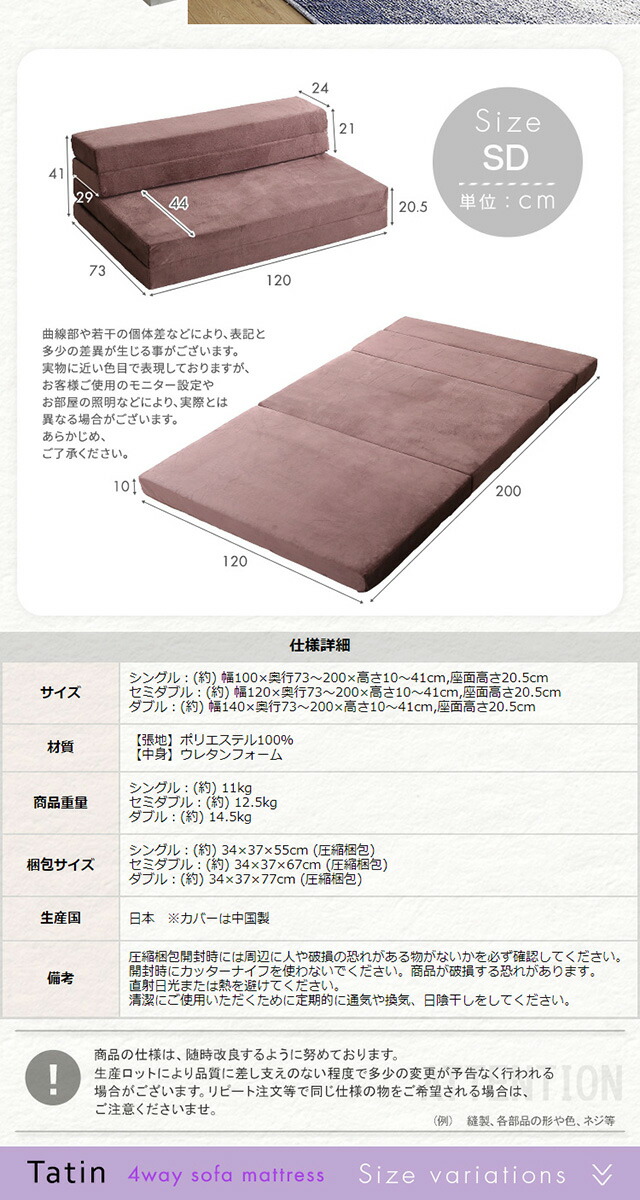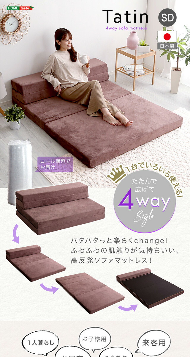 4Way ソファマットレス 折りたたみ セミダブル 【Tatin-タタン-】 10cm厚 日本製 ソファになる マットレス 高反発 ウレタン 折り畳み 折りたたみベッド マットレスソファー ソファーベッド ローソファ 一人暮らし 単身赴任 来客用 【代引不可】[グレー]