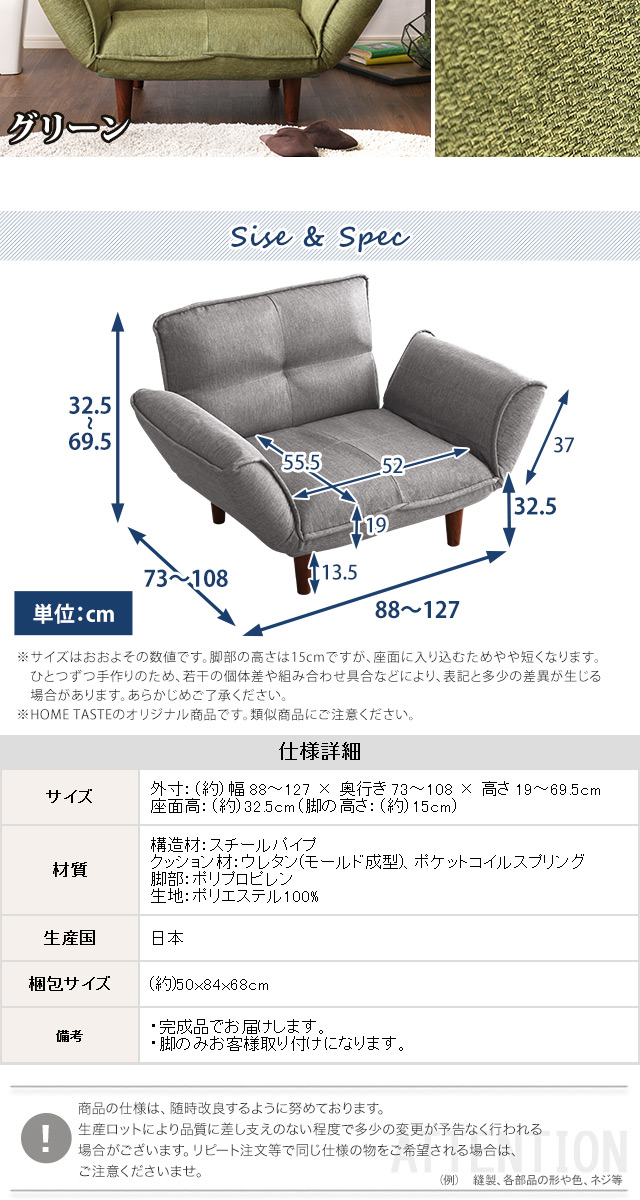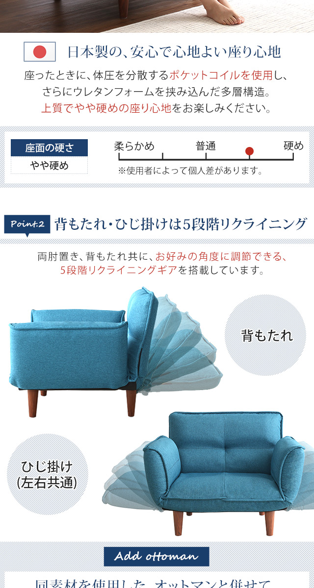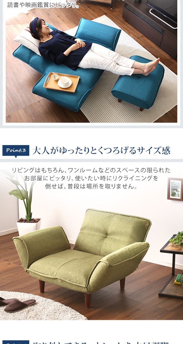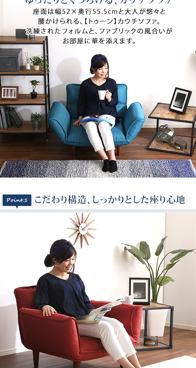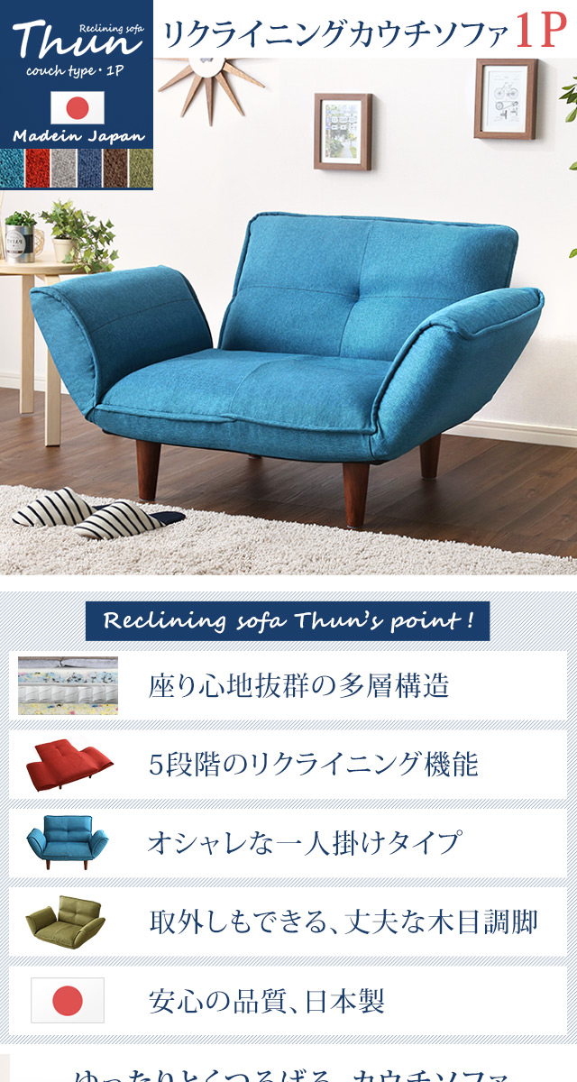 1人掛ソファ(布地)5段階リクライニング、フロアソファ、カウチソファに 日本製|Thun-トゥーン-[グレー]