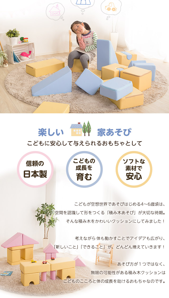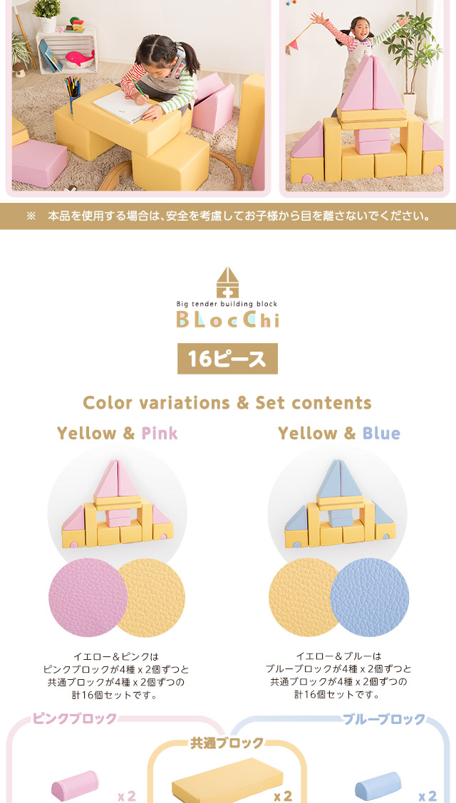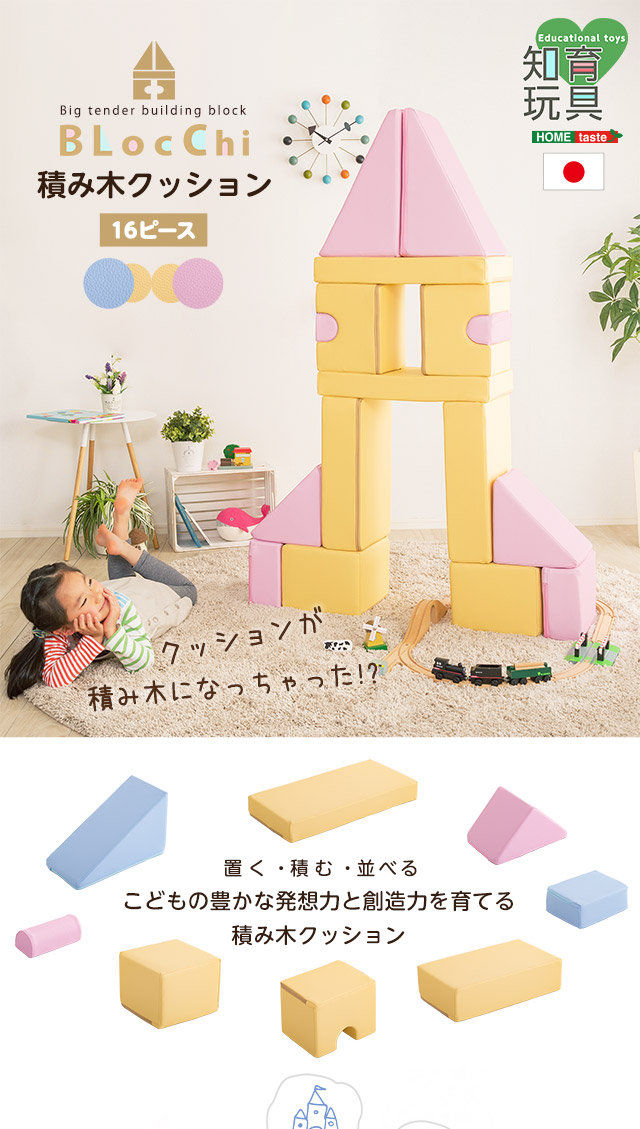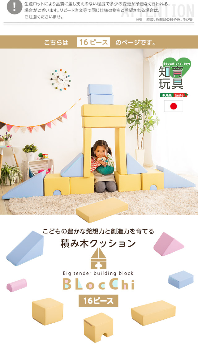 積み木クッション【BLOCCHI-ブロッチ-】 16個セット 【代引不可】[イエローブルー]