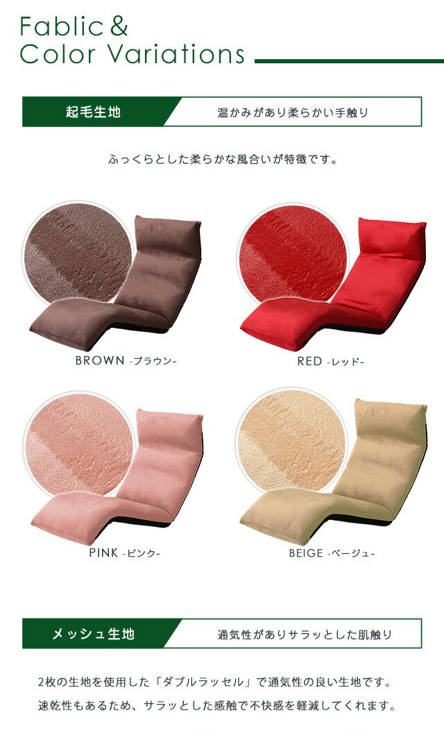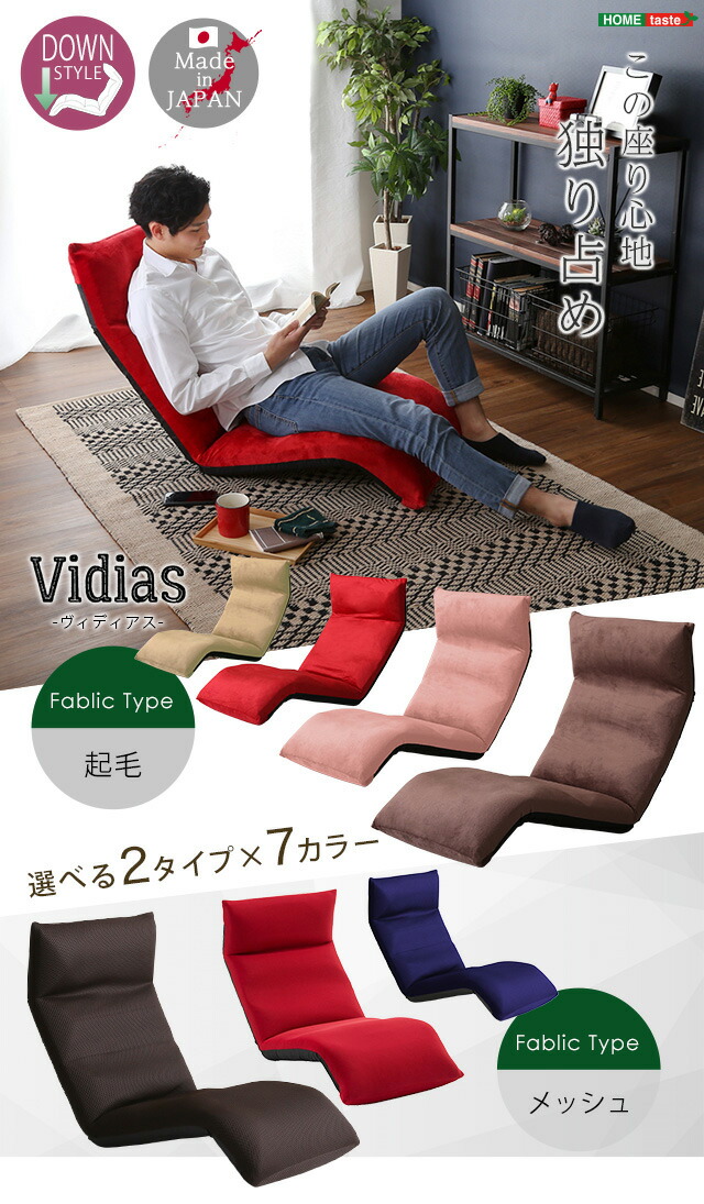 日本製 マルチリクライニング座椅子 Vidias-ヴィディアス 7カラー (ダウンスタイル) 14段階 折りたたみ式 起毛 メッシュ リクライニング座椅子 一人用 一人暮らし おしゃれ 代引/同梱不可[起毛ピンク]