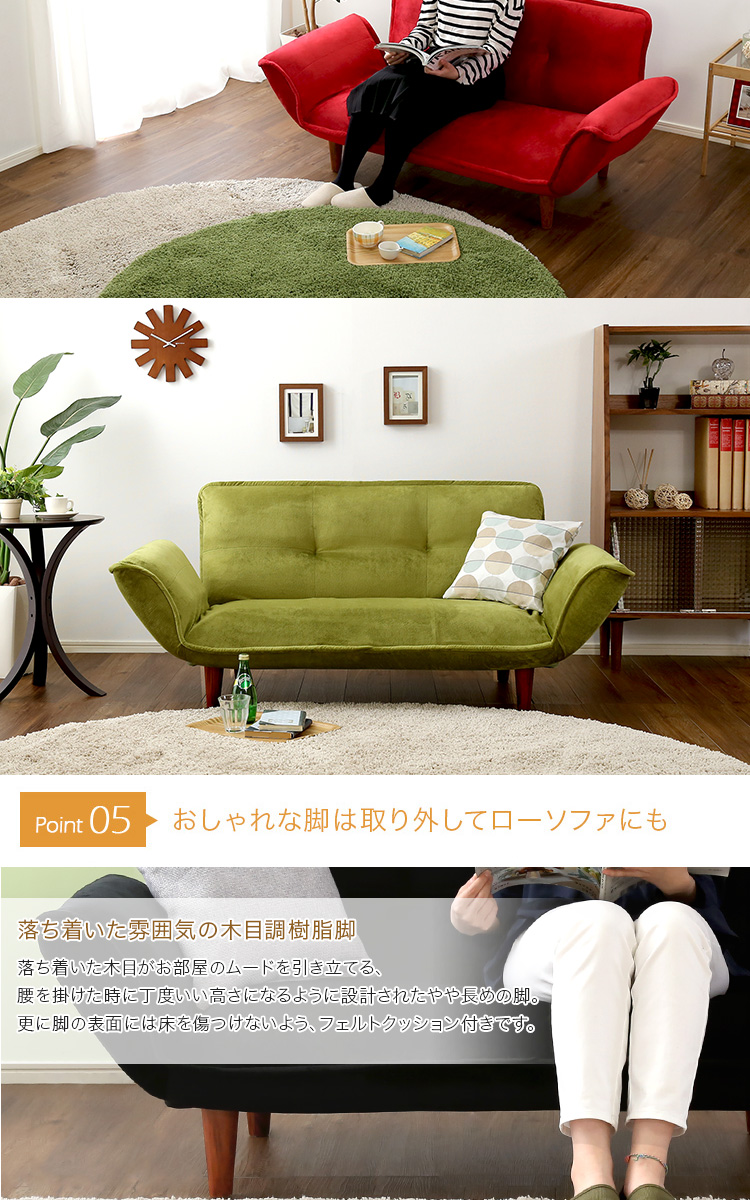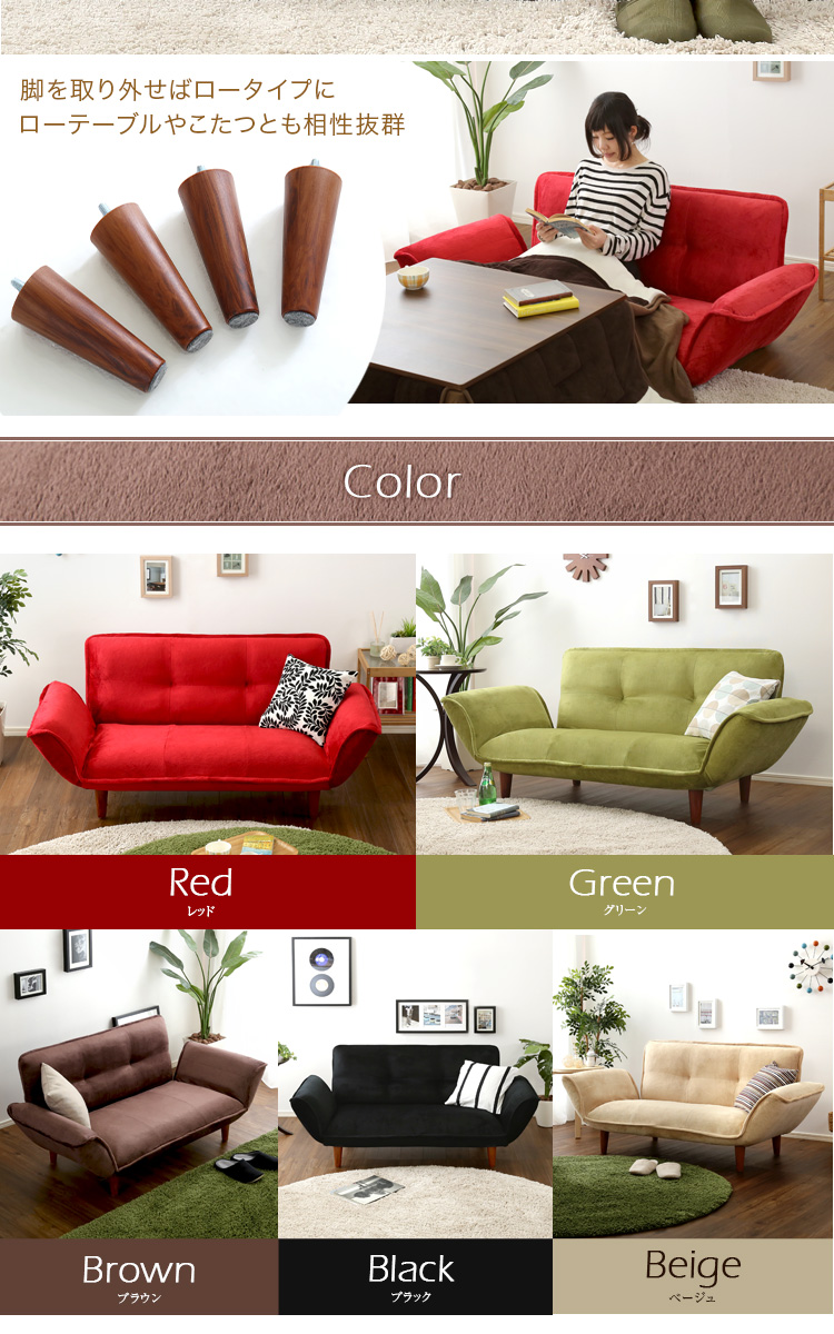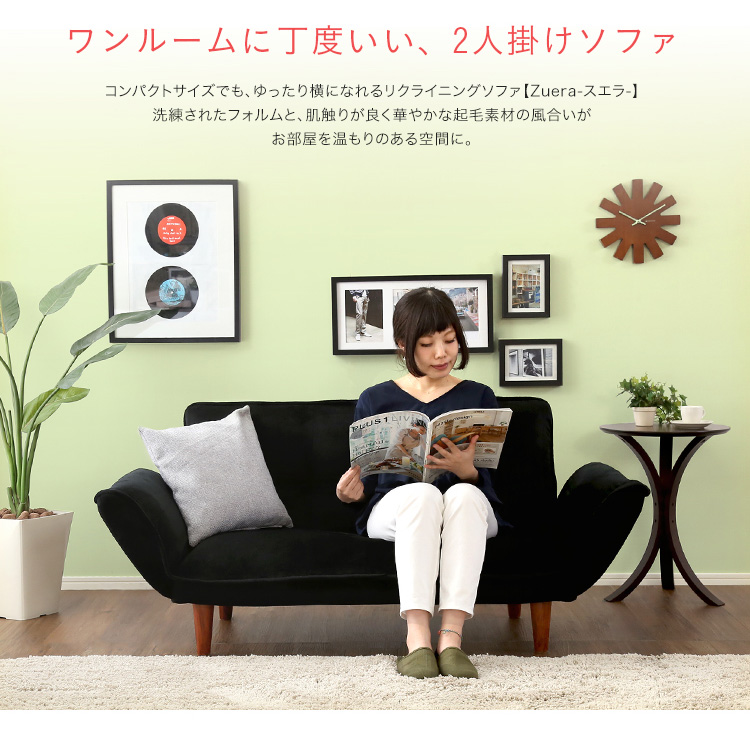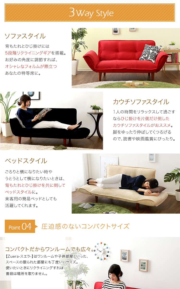 コンパクトカウチソファ「Zuera-スエラ-」(ポケットコイル リクライニング 起毛タイプ 日本製)[レッド]