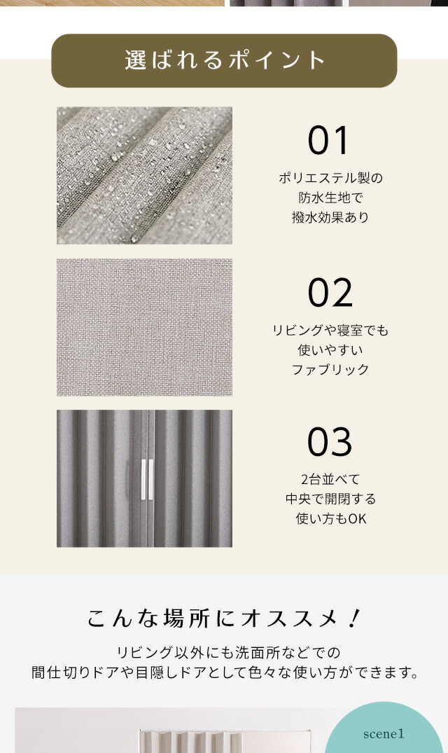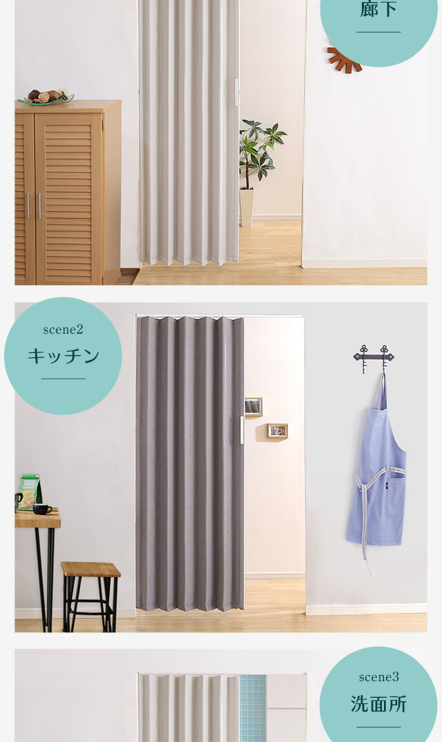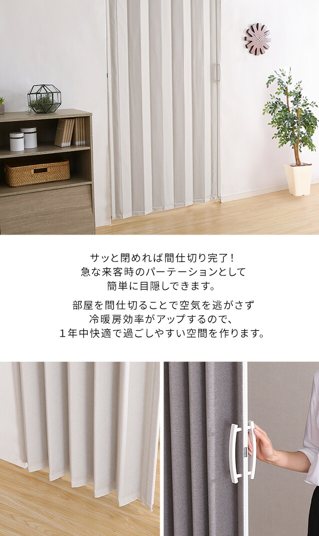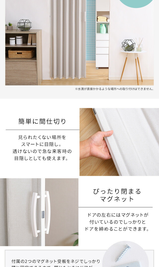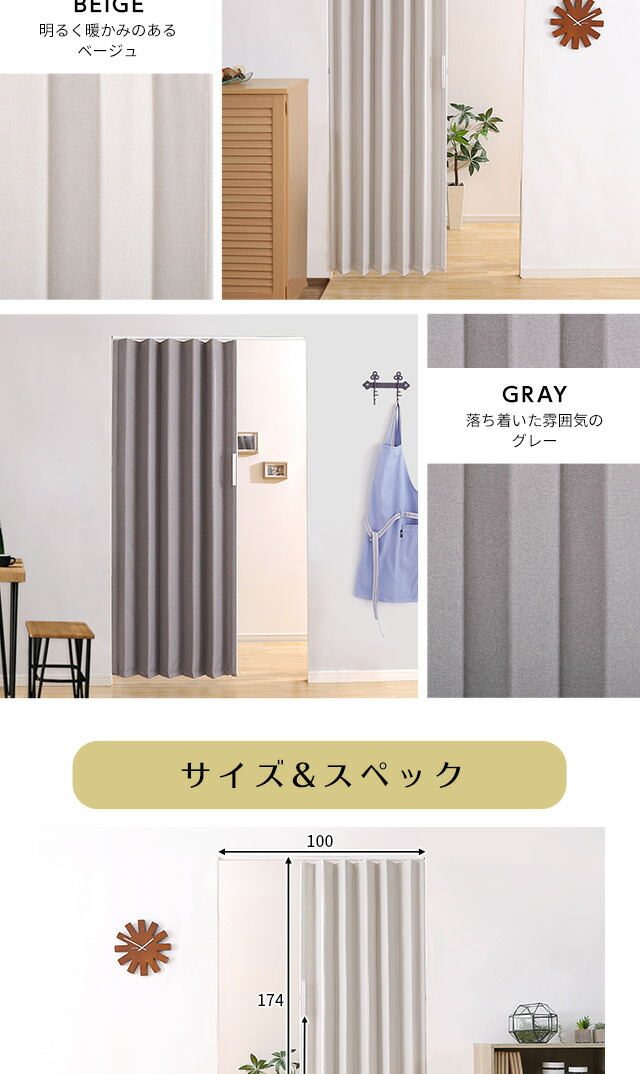 アコーディオンドア ファブリック 【FULIC-フリック-】 間仕切り カーテン アコーディオンカーテン パーテーション 目隠し シンプル おしゃれ 廊下 キッチン 洗面所 【代引不可】[ベージュ]