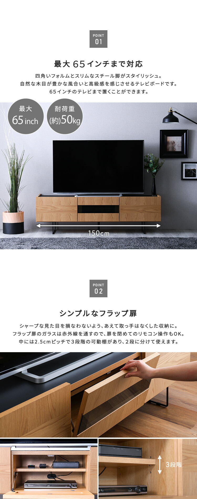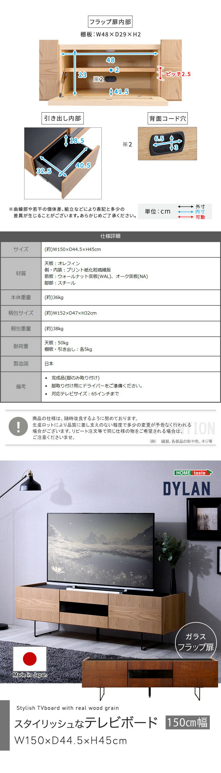 テレビボード テレビ台 150cm幅 日本製 65インチ対応 スチール脚 スタイリッシュ 【Dylan-ディラン-】 テレビラック TV台 ローボード 引き出し 収納棚 フラップ扉 一人暮らし 新生活 おしゃれ 【代引不可】[ウォールナット]