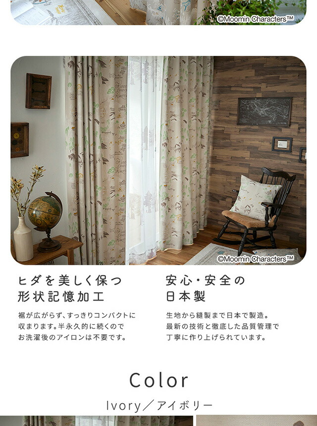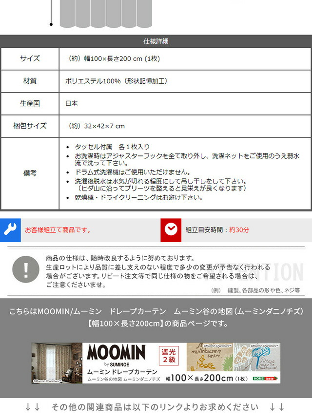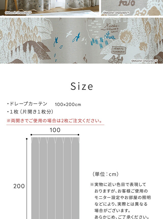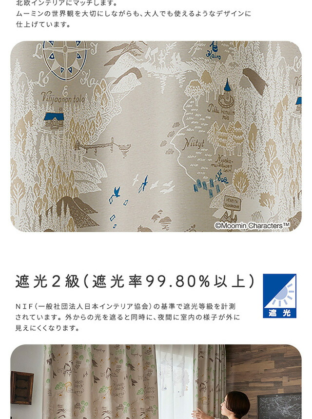 カーテン 100×200cm 1枚 MOOMIN/ムーミン 遮光 2級 【ムーミン谷の地図】 ドレープカーテン 遮光カーテン 日本製 洗える 形状記憶加工 北欧風 おしゃれ リビング 子供部屋 寝室 【代引不可】[グレー]