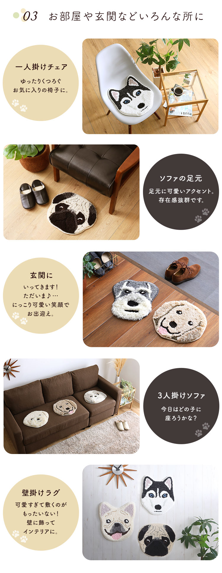 マット 犬顔 イヌ顔 チェアパッド 洗える 防ダニ 滑り止め 日本製 シートクッション 玄関マット 足元マット ミニ 座布団 ラグ 犬 イヌ いぬ 犬柄 犬マット イヌマット 動物柄 かわいい 可愛い 床暖房対応 ホットカーペット対応 【代引不可】[シュナウザー]