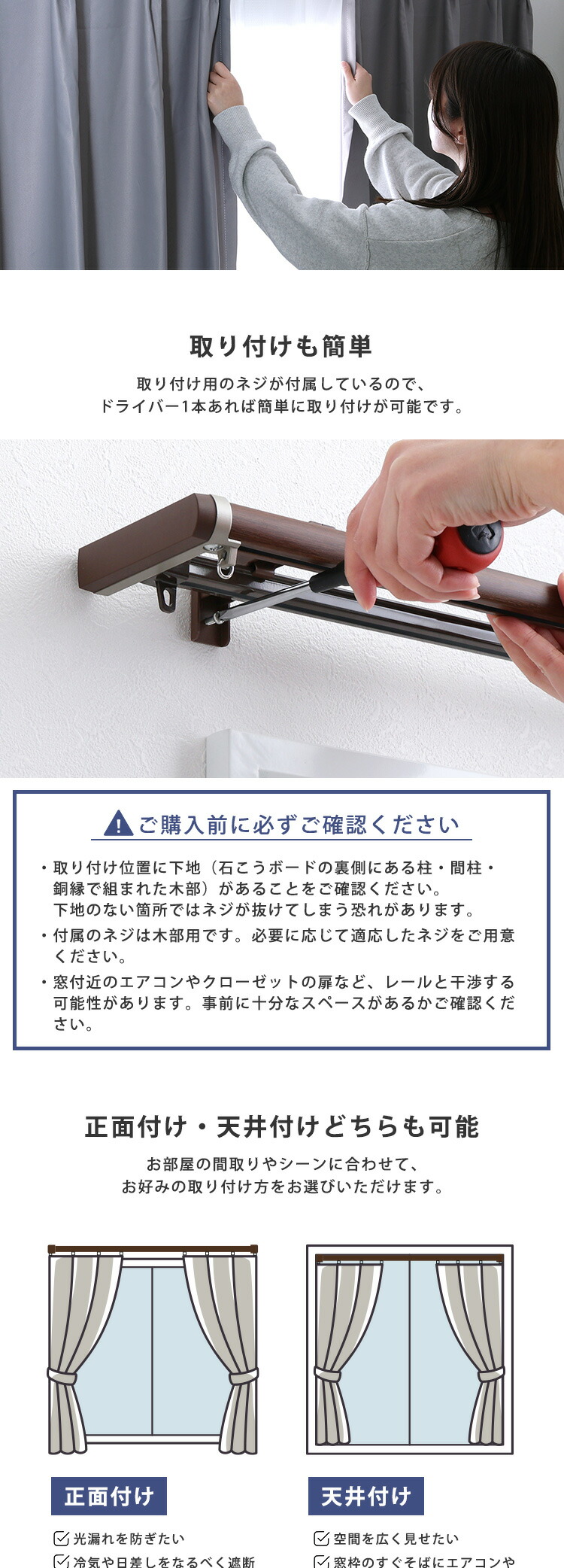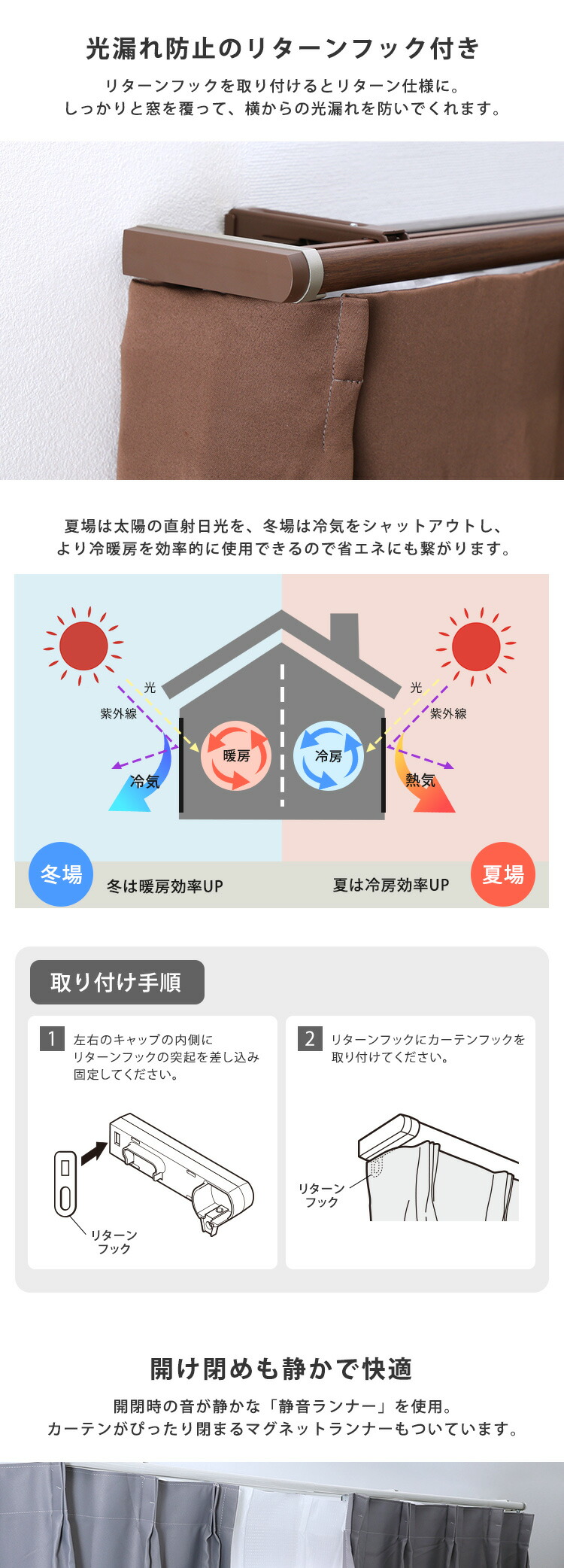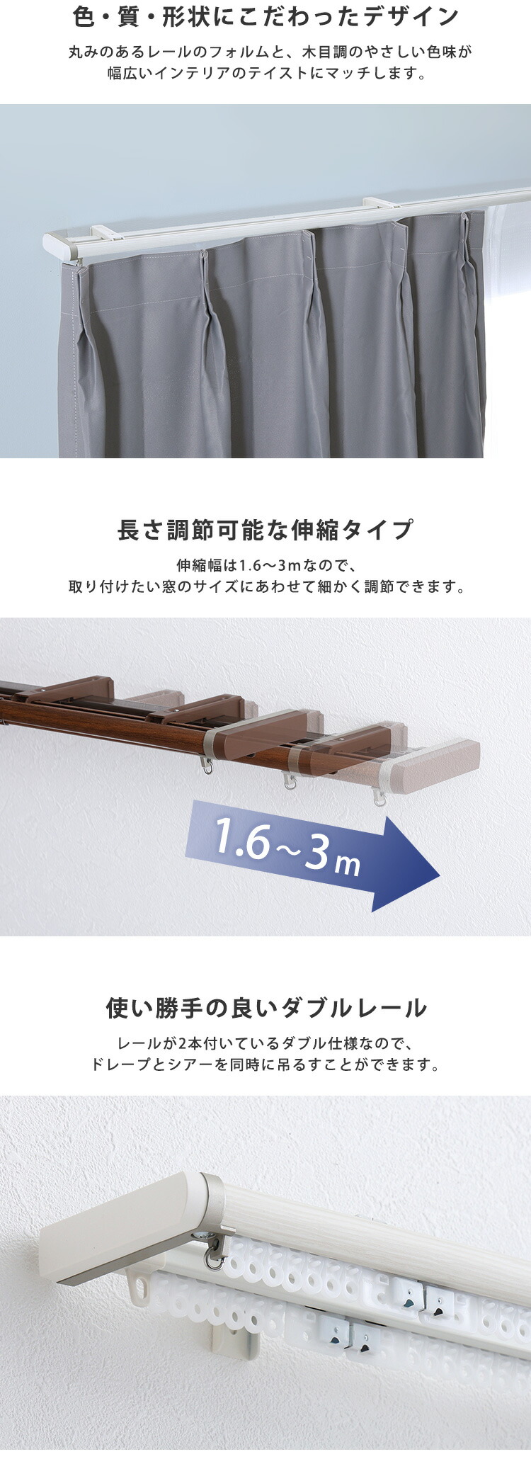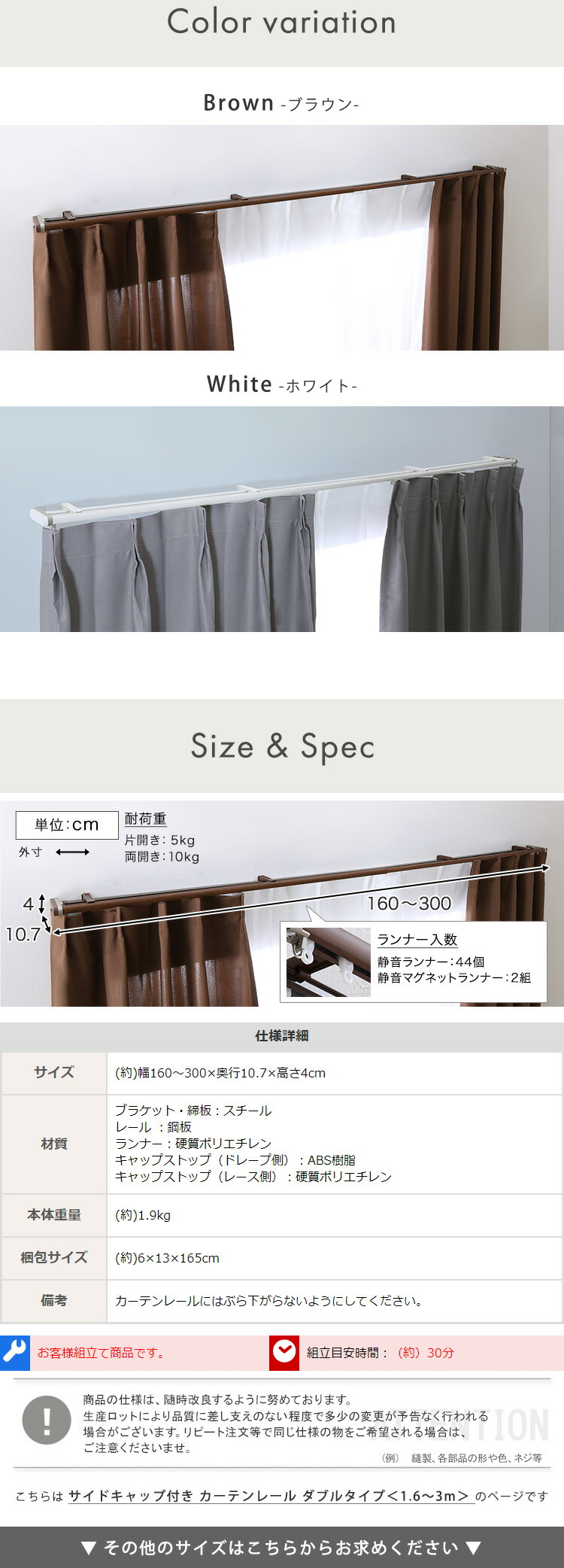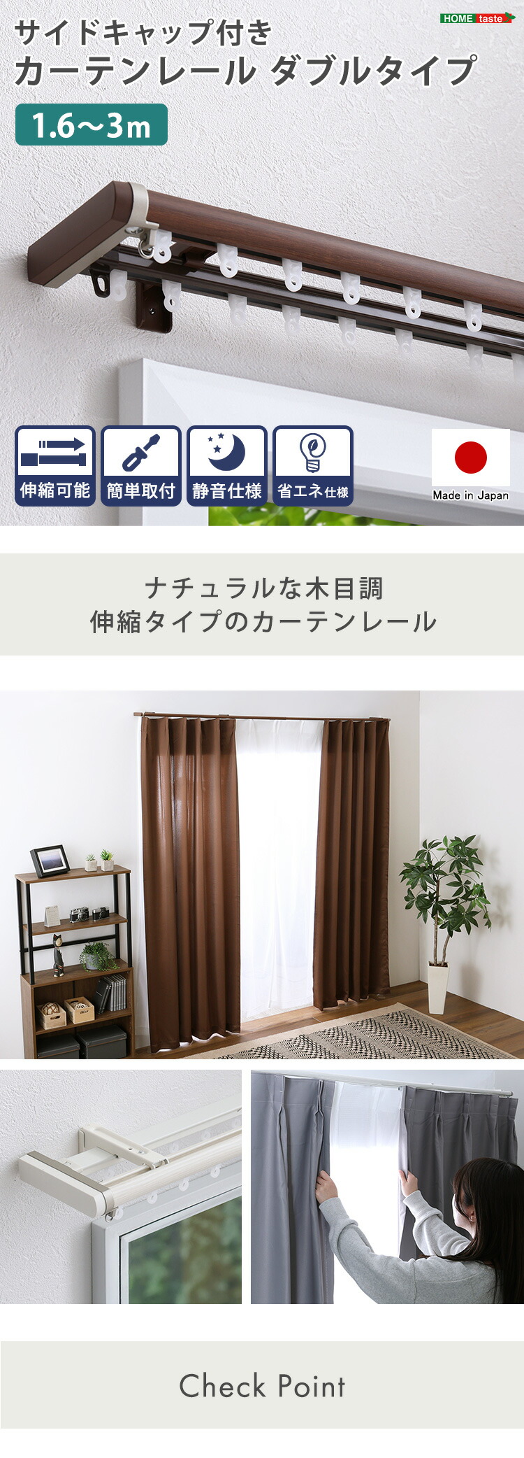 カーテンレール ダブル 省エネ仕様 サイドキャップ付き 1.6~3m 伸縮 静音 日本製 【代引不可】[ホワイト]