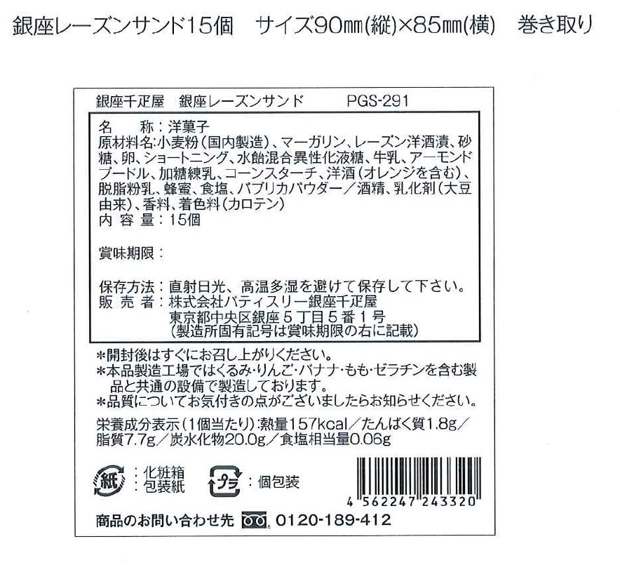 ■規格:レーズンサンド15個