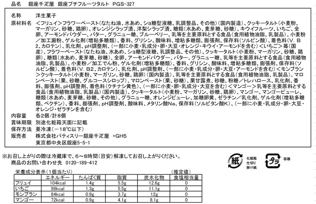 ■規格:銀座プチフルーツタルト(フリュイ、マンゴー、苺、モンブラン)各2個(計8個)