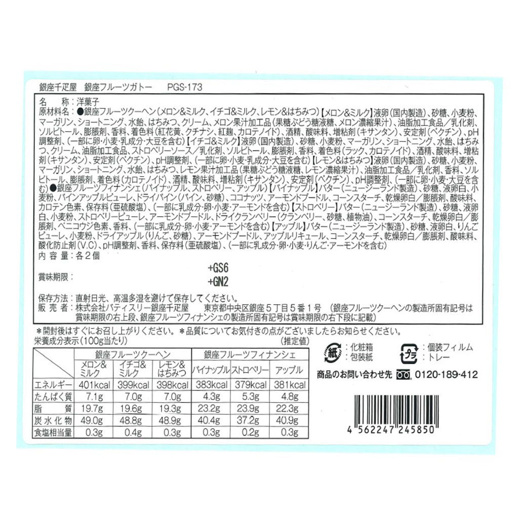 ■規格:銀座フルーツクーヘン (メロン&ミルク、イチゴ&ミルク、レモン&はちみつ) 3種各2個、銀座フルーツフィナンシェ (パイナップル、ストロベリー、アップル) 3種各2個