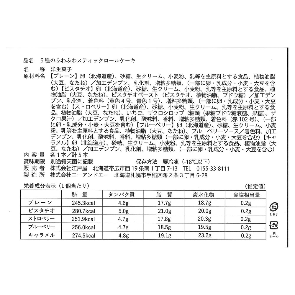 ■規格:プレーン・キャラメル・ピスタチオ・ストロベリー・ブルーベリー 各1本