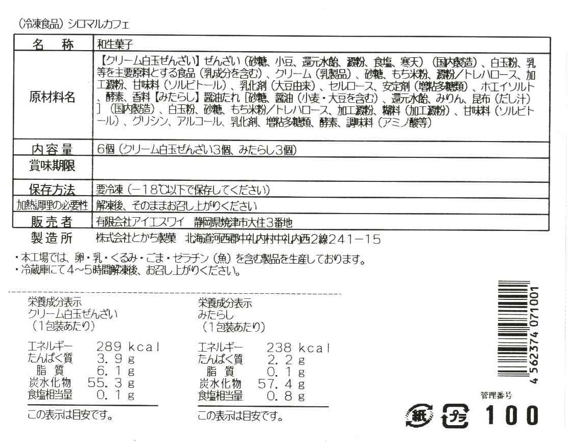 ■規格:6個(クリーム白玉ぜんざい3個、みたらし3個)