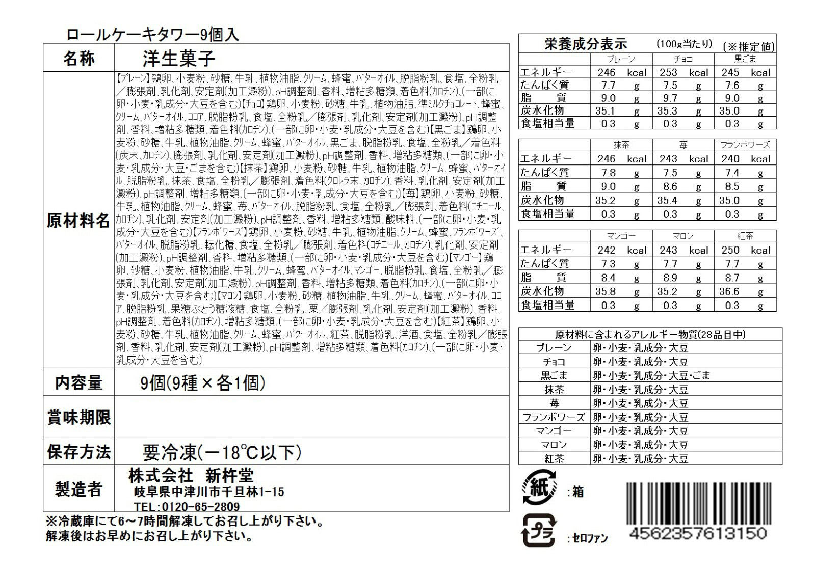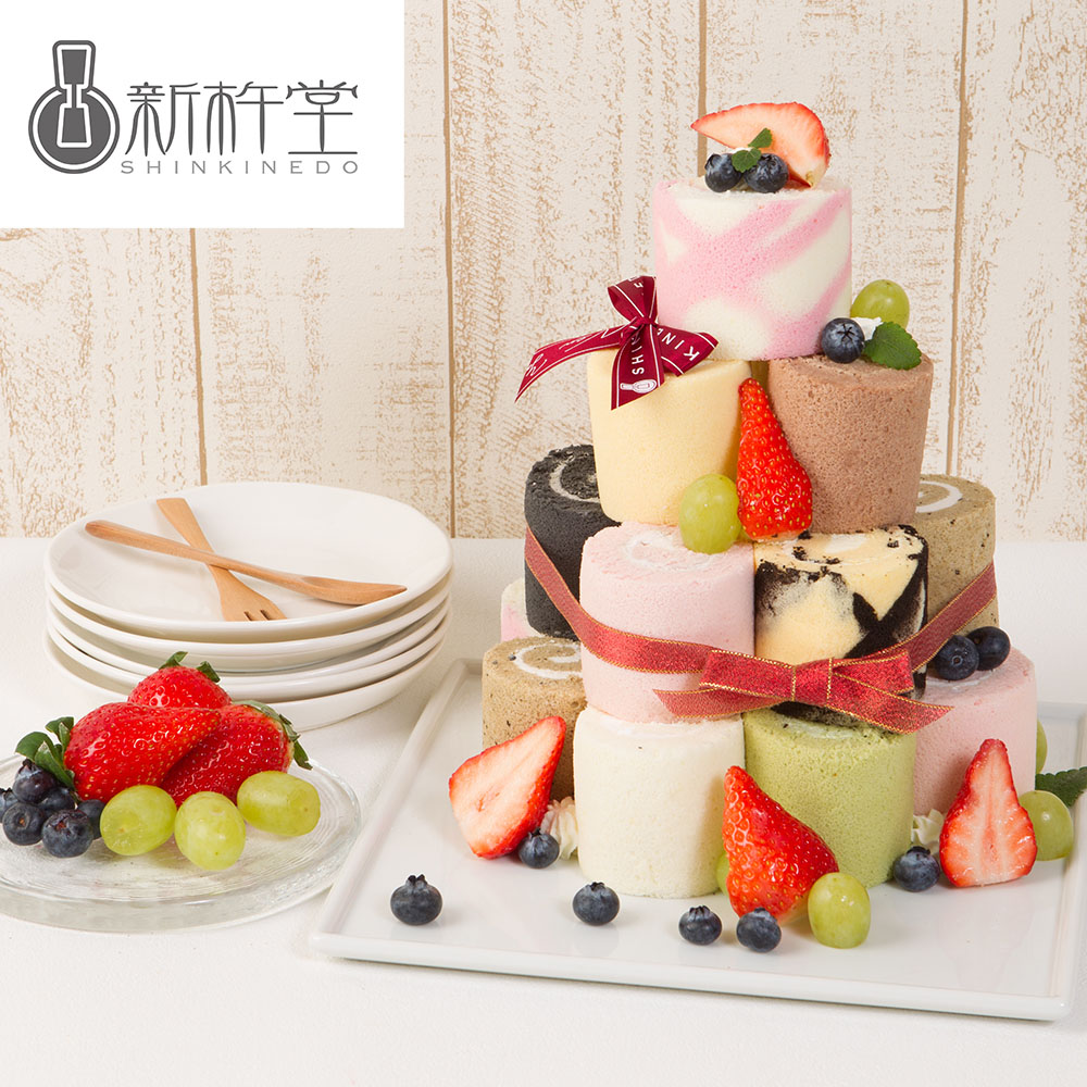 岐阜 「新杵堂」 ロールケーキタワー 9種類 18個 ギフト 小さな9種類のロールケーキセット 3460069