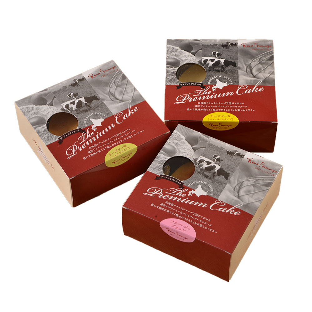 北海道クリームチーズをたっぷり使用したチーズケーキをオーブンで焼いたベイクドチーズケーキ。蒸し焼きにしたニューヨークチーズケーキ。生クリームを使用したプリンタイプの生地にキャラメリゼを施したフロマージュブリュレのセット。