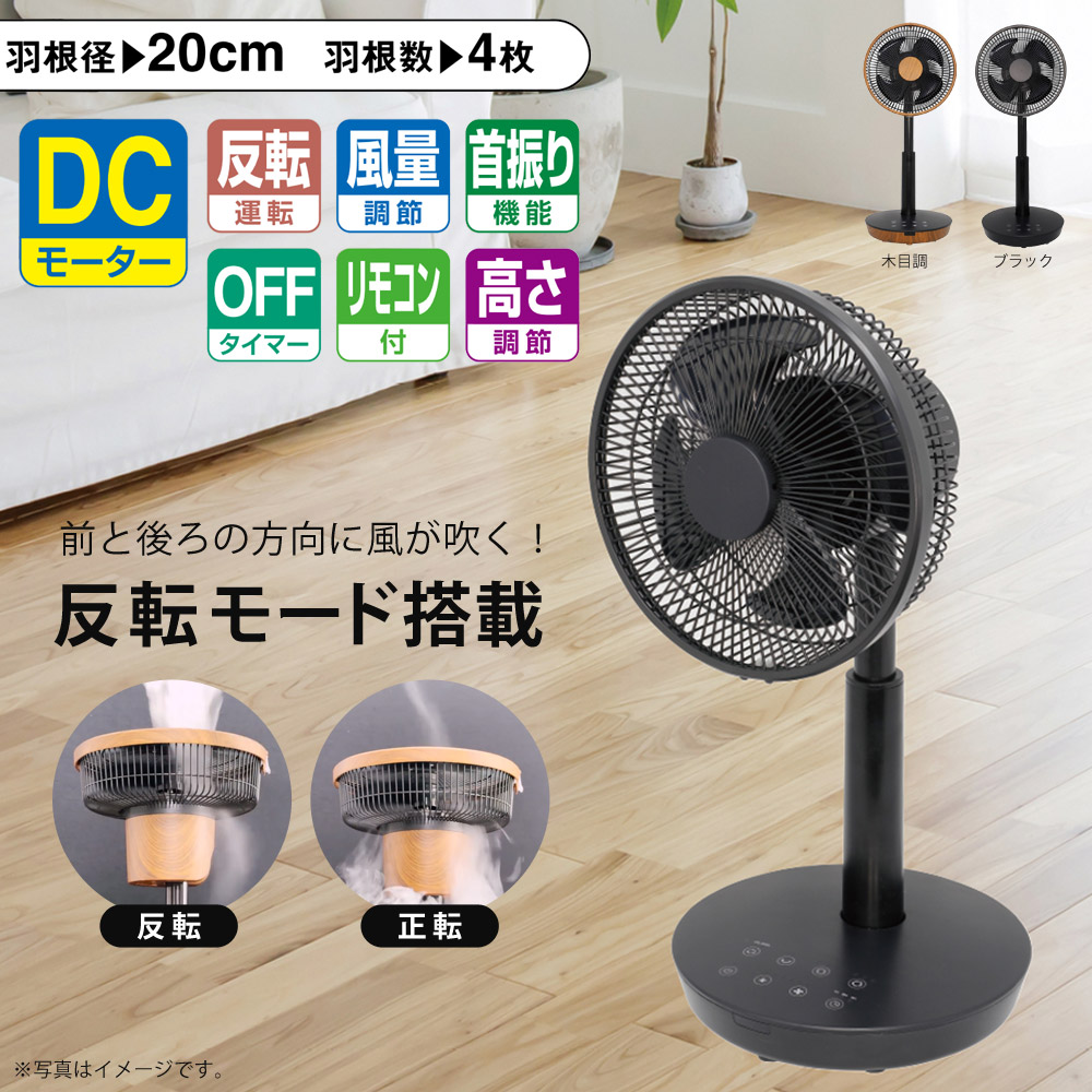 扇風機 リビング 反転運転機能付き リビング 首振り 2WAY 逆回転 風量8段階 高さ調節 20cm 4枚羽根 SKJAPAN エスケイジャパン SKJ-KT20FSA[ブラック]