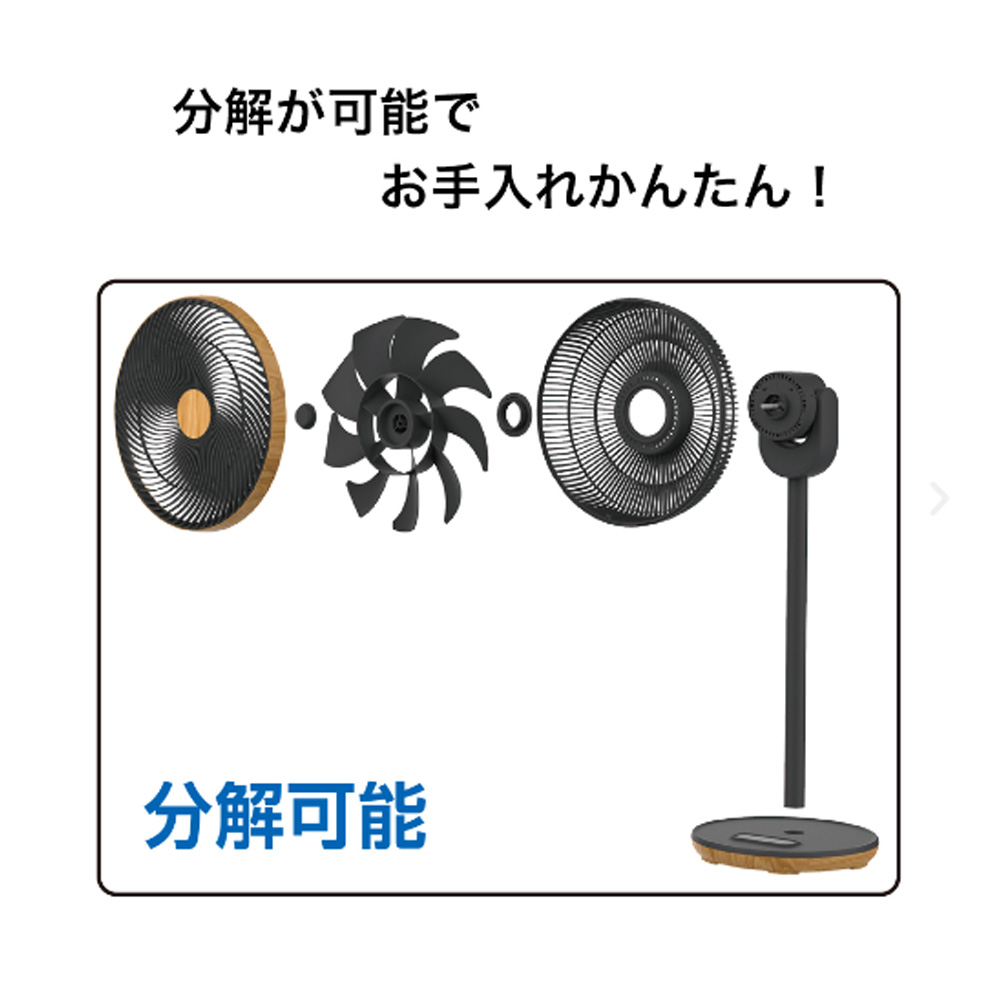 DCモーター搭載で細かく適切な風量に調節可能。しかも静かで省エネ!