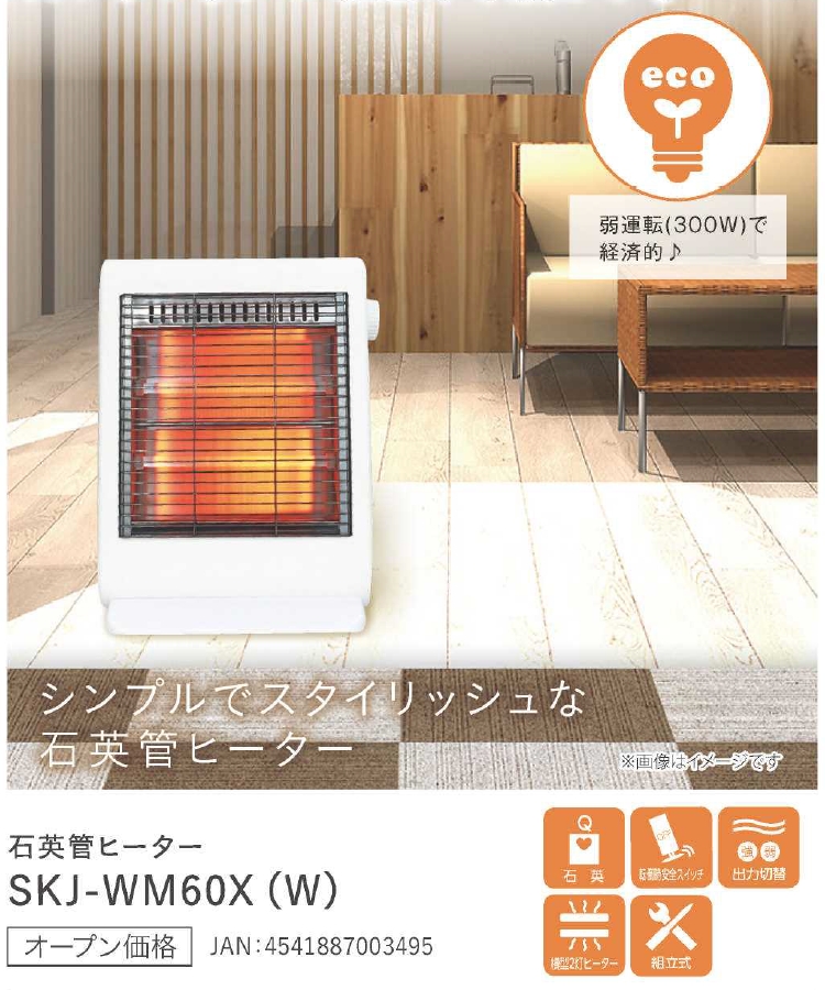 石英管ヒーター600W 持ち運びカンタン。いつも近くで暖かい。 シンプルでスタイリッシュ SKJAPAN エスケイジャパン SKJ-WM60X 【代引不可】