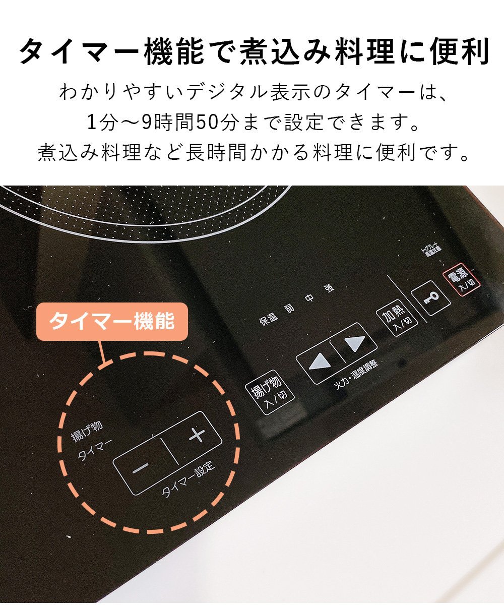 検索キーワード:IH調理器 IH調理機 IHクッキングヒーター IHコンロ 電磁調理器 卓上調理器具 高火力 加熱 保温 ガラストップ 工事不要 1人暮らし 一人暮らし 新生活