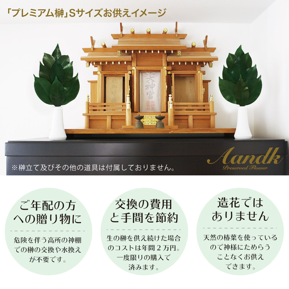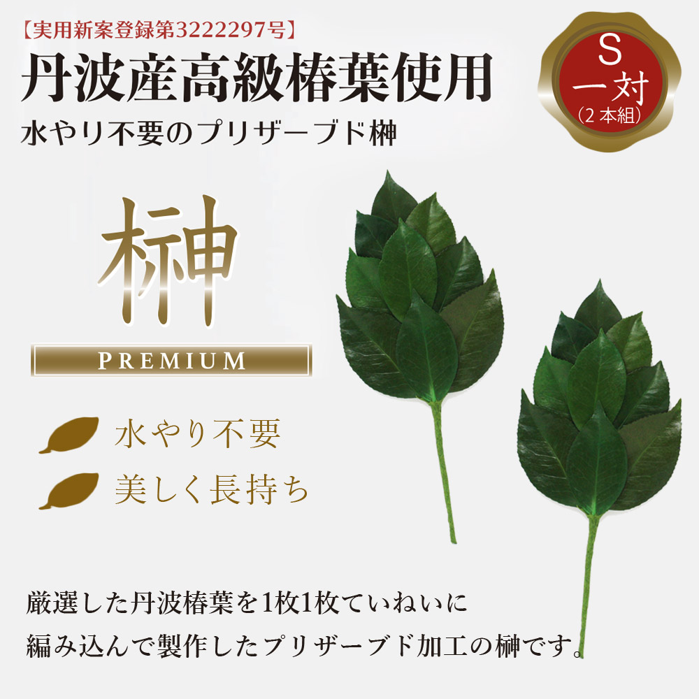 【メール便】 プリザーブド 榊 プレミアム Sサイズ(一対) 椿葉を実用新案取得製法加工 長持ちし水やり不要 【代引/同梱不可】