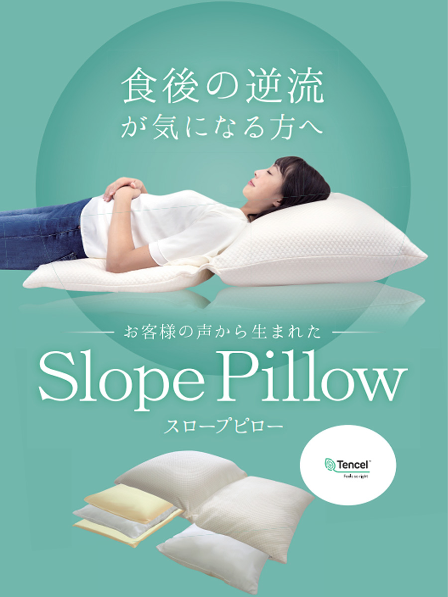 Slope Pillow(スロープピロー)は、お客様の声から生まれた、食後の逆流が気になる方のための枕。
