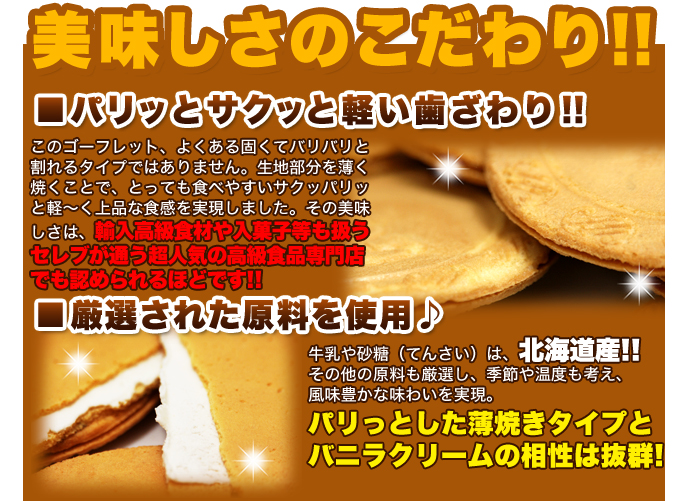 パリっとした薄焼きタイプとバニラクリームの愛称は抜群!