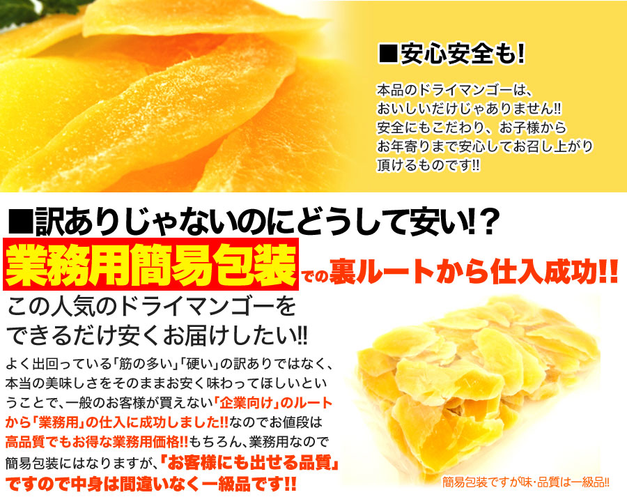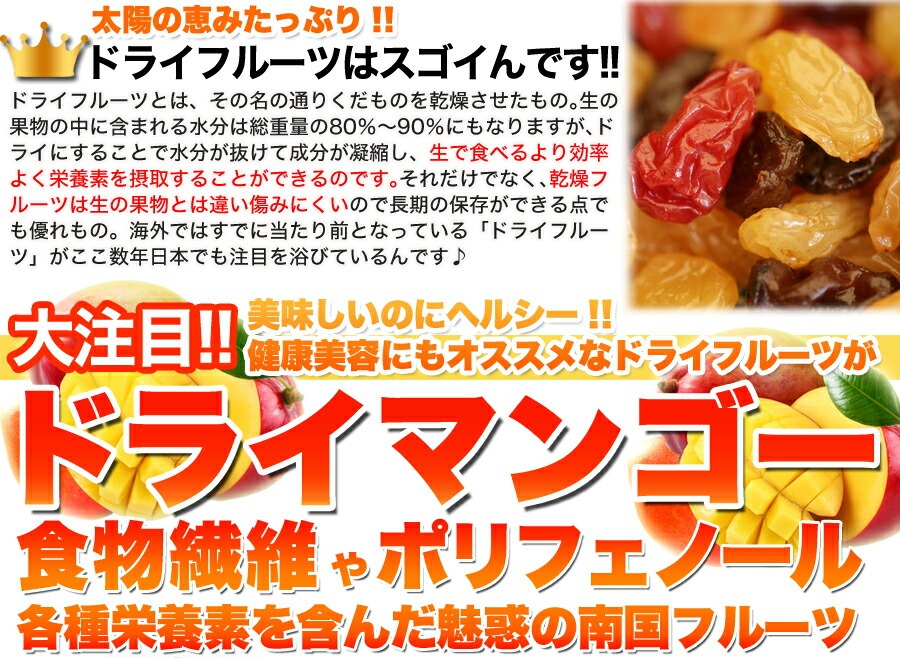検索キーワード: 肉厚 マンゴー ドライ 無着色 無香料 ドライフルーツ 業務用 大容量 フルーツ 果物 南国の太陽 誕生日 父の日 母の日 敬老の日 景品 賞品 粗品 新歓 歓迎 送迎 新年会 忘年会 景品 プチギフトお土産 ギフト プレゼント