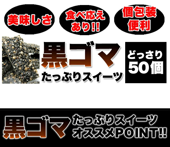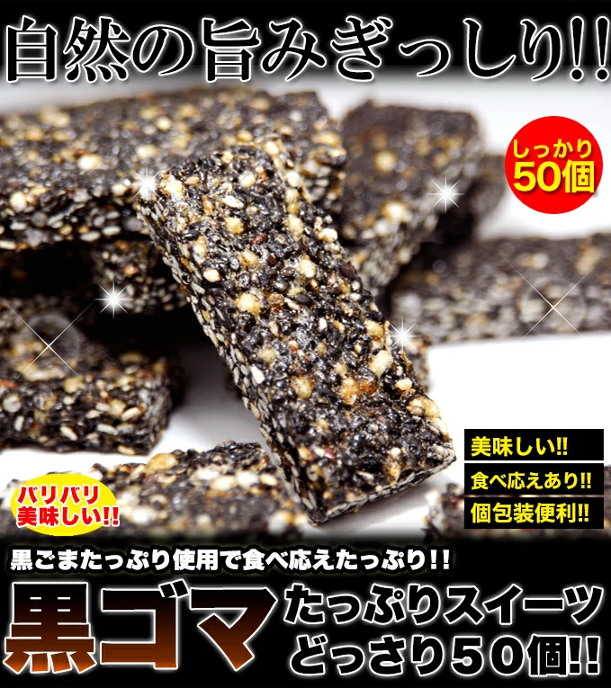 黒ゴマたっぷりスイーツ 50個 個包装 黒ゴマをたっぷり使用!!ザクザク食感の新感覚スイーツです!! 【代引不可】