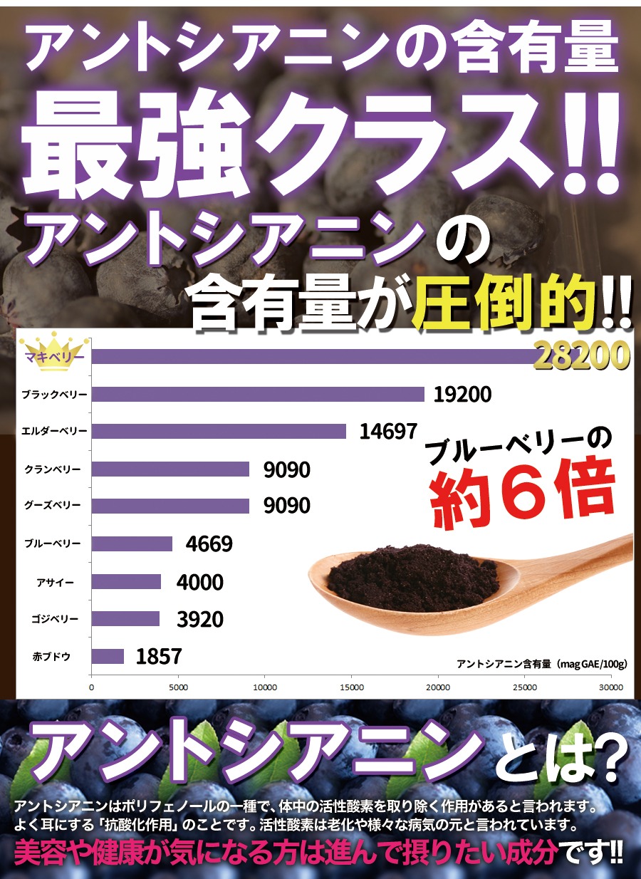 検索キーワード: スーパーフード マキベリー パウダー ポリフェノール アントシアニン スーパーフルーツ 果実加工品 粉末 誕生日 父の日 母の日 敬老の日 景品 賞品 粗品 新歓 歓迎 送迎 新年会 忘年会 景品 プチギフトお土産 ギフト プレゼント