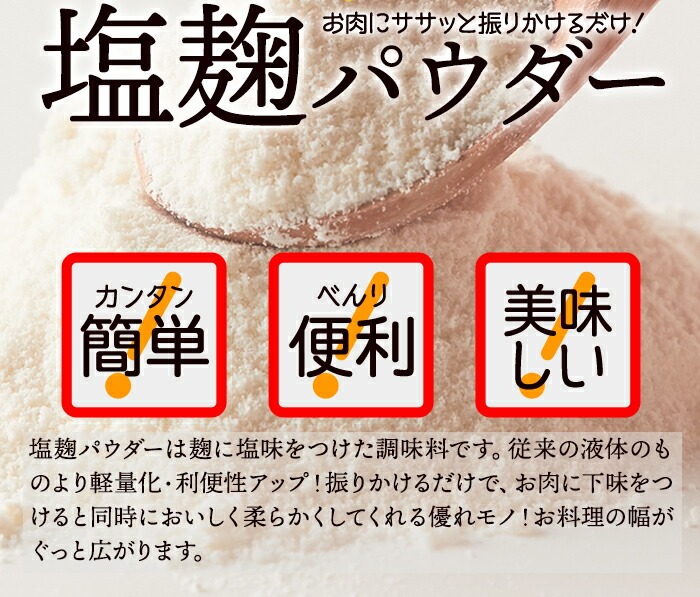 検索キーワード: 塩こうじパウダー 塩麹パウダー 粉末 調味料 万能 簡単 便利 美味しい 使いやすい 誕生日 父の日 母の日 敬老の日 景品 賞品 粗品 新歓 歓迎 送迎 新年会 忘年会 景品 プチギフトお土産 ギフト プレゼント