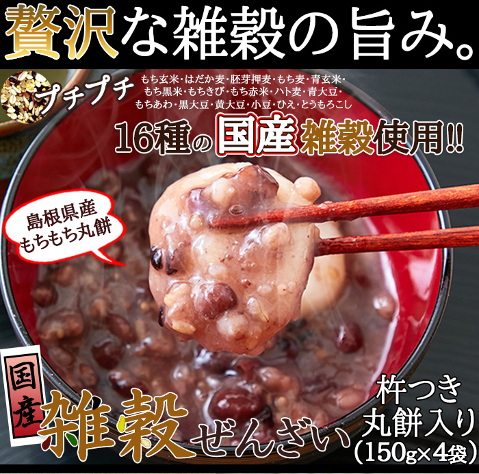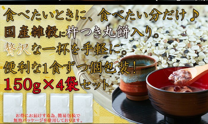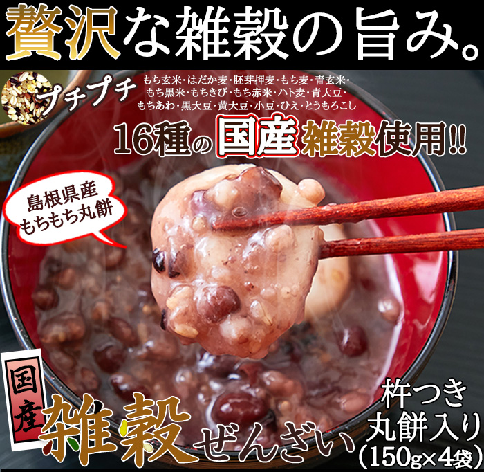 完全国産 雑穀ぜんざい (丸餅2個入) 150g×4袋 ぜんざい 餅入り もち入り 国産雑穀 レトルト おしるこ お汁粉 餅入りぜんざい 【代引不可】