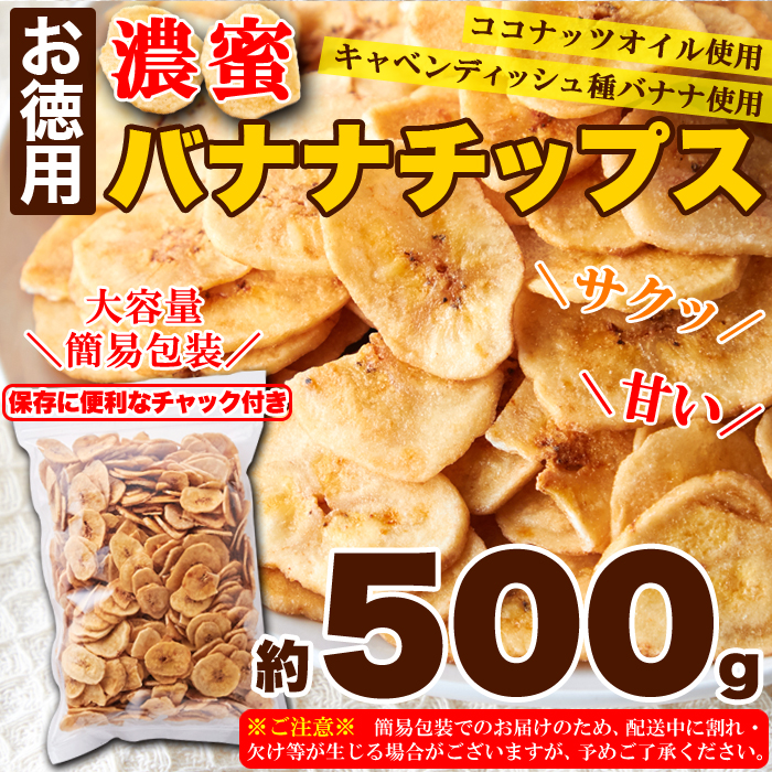 【お徳用】濃蜜バナナチップス500g バナナチップス ドライフルーツ バナナ お徳用 大容量 簡易包装 500g チャック付き SM00010686 【代引不可】