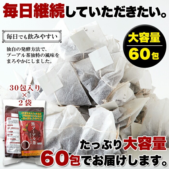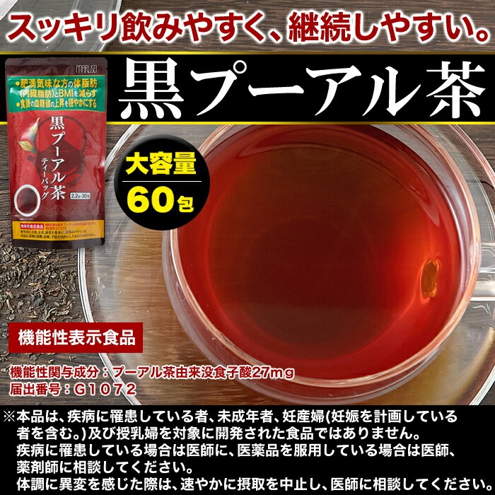 【機能性表示食品】 黒プーアル茶 60包(30包×2袋) 中国茶 プーアル茶 黒茶 ティーバッグ まろやか 飲みやすい 【代引不可】