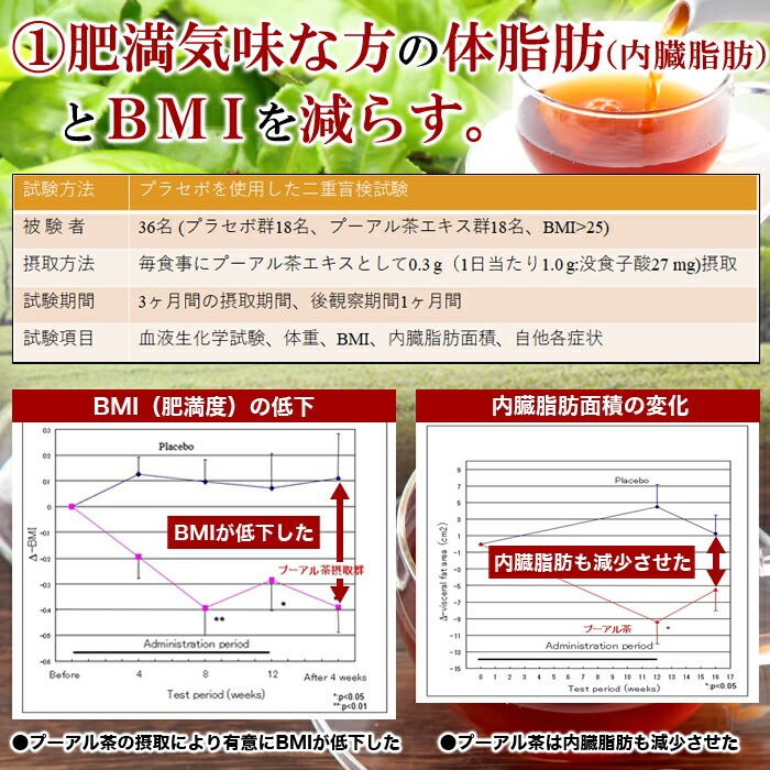 (機能性関与成分:プ―アール茶由来没食子酸として27?)