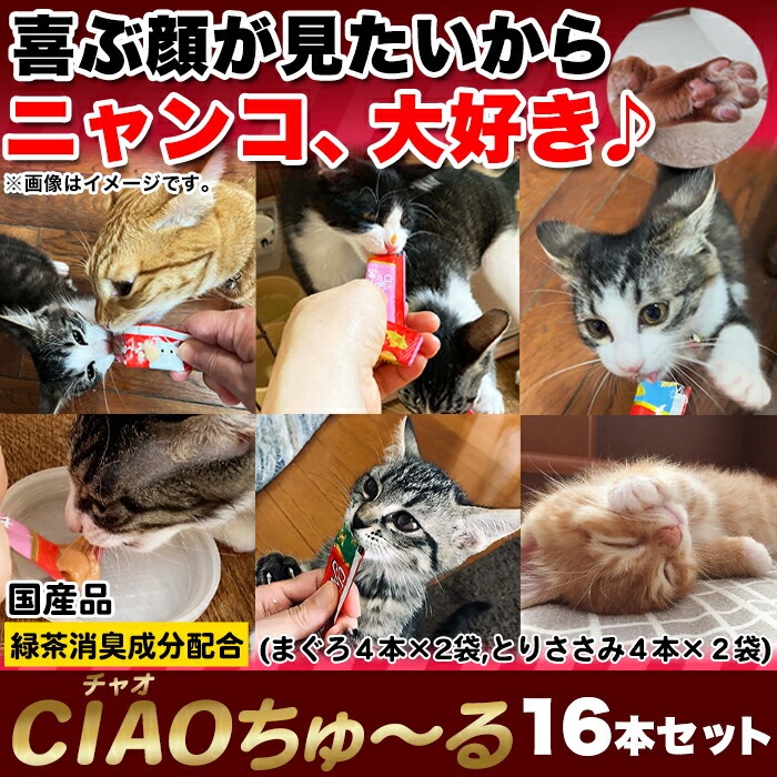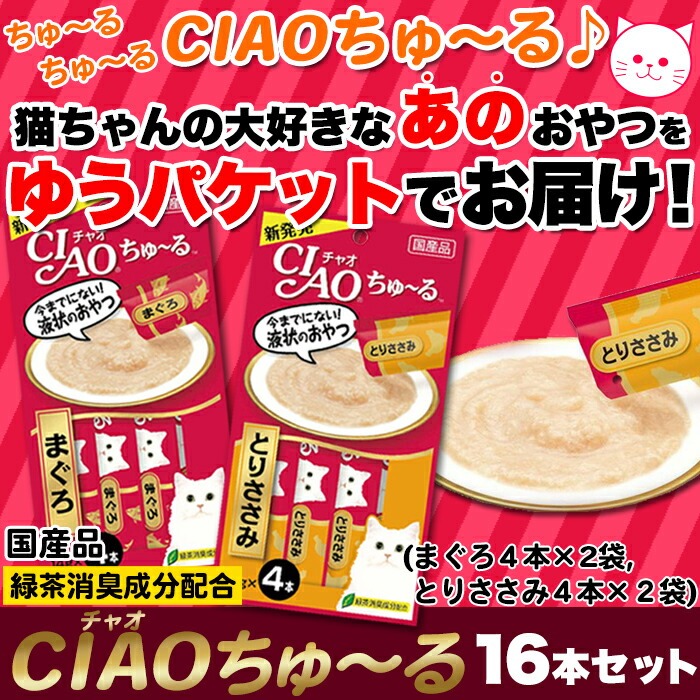 CIAOちゅ~る 2種類 16本セット(まぐろ8本・とりささみ8本) 2種類の味を食べ比べ♪猫ちゃんの大好きな「あの」おやつをゆうパケットでお届けします! 【代引不可】